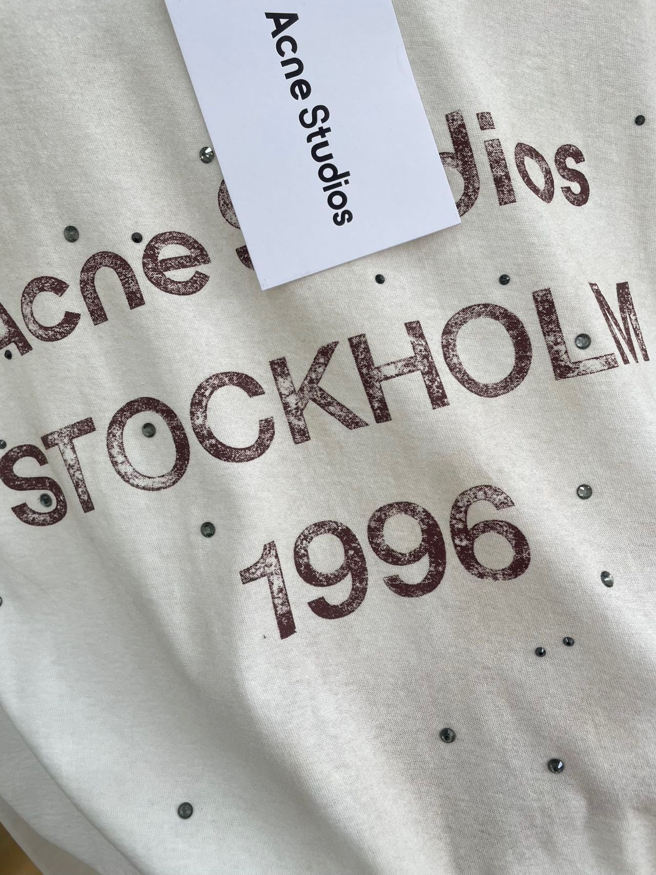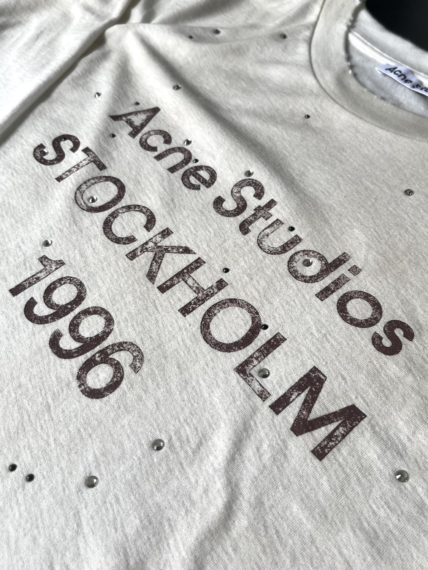Introducing the Acne Studios 1996 Limited Edition Distressed Rhinestone Long Sleeve Tee, a 100% exclusive piece that perfectly captures the essence of vintage charm with a modern twist. Meticulously crafted, this tee features an authentic 1:1 restoration of the original design, offering a unique blend of style and comfort.