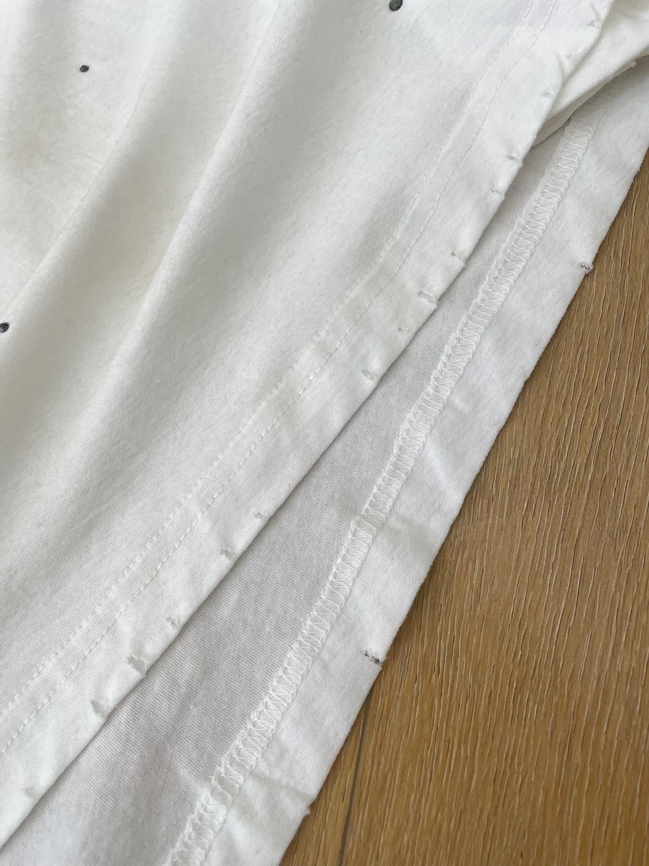 Available in two versatile colors—Distressed White and Distressed Navy Blue—this tee is offered in sizes XS, S, M, and L. Elevate your wardrobe with this iconic piece that combines luxury, artistry, and a touch of rebellion.