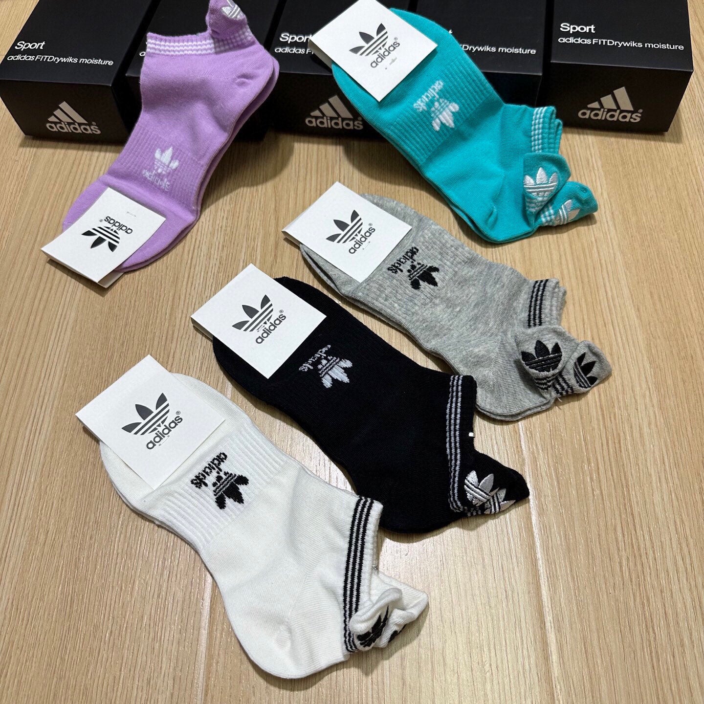 Discover our Adidas Clover Logo Cotton Socks, crafted for comfort and style. This popular design features the iconic clover logo, making it a trendy addition to your wardrobe. Made from high-quality combed cotton, these socks are exceptionally soft and comfortable for all-day wear. Each box includes five pairs, perfect for maintaining a fresh and fashionable look. Elevate your sock game with this must-have item of the season!
