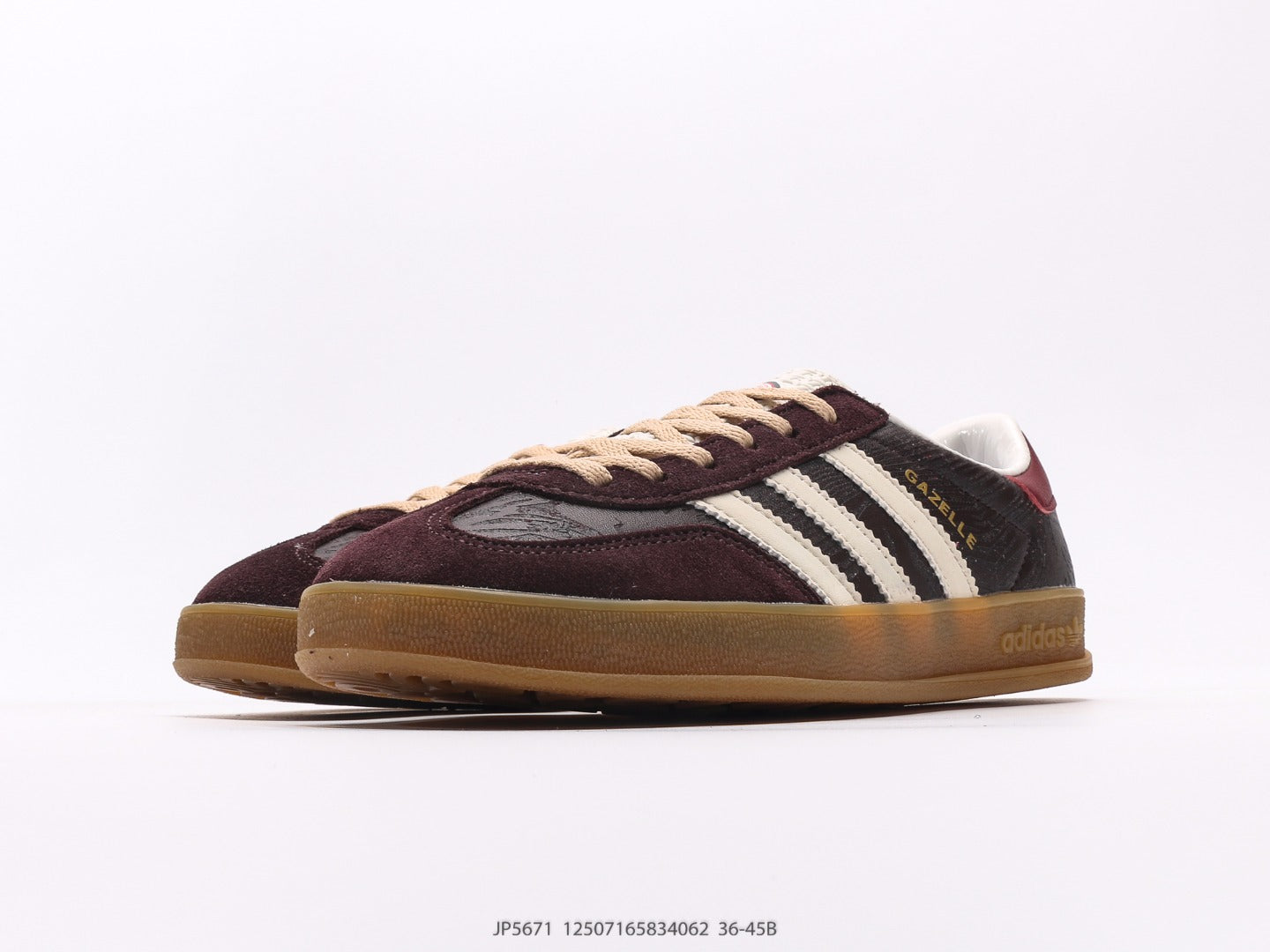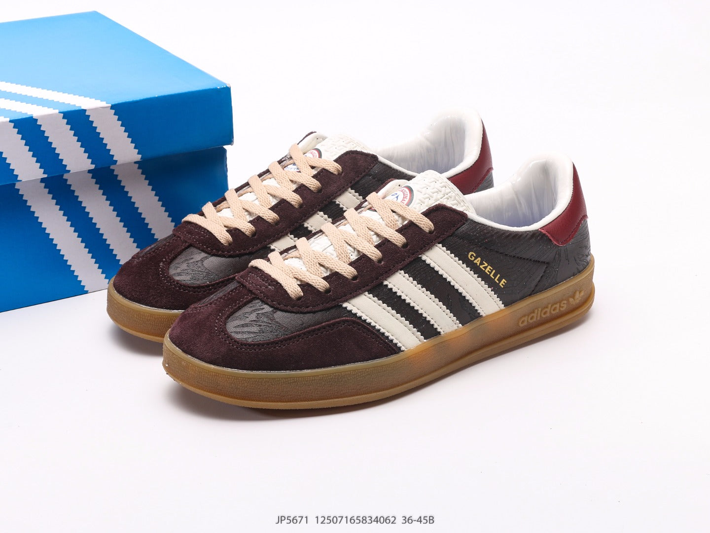 Step into style and comfort with the adidas Originals Gazelle Indoor Clover sneakers. These low-cut, casual shoes feature a unique toe design and a stable heel for the perfect fit, tailored to align with the natural curve of your foot. The soft materials ensure all-day comfort, while the robust rubber sole is engineered for durability and includes an anti-slip texture for exceptional grip on various surfaces. Available in a wide range of sizes from 36 to 45¹/₃, these sneakers are the perfect blend of fashion and functionality. Elevate your footwear collection with the ultimate in casual footwear. Item No. J#12507165834062.