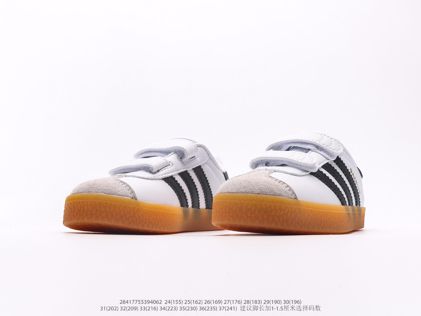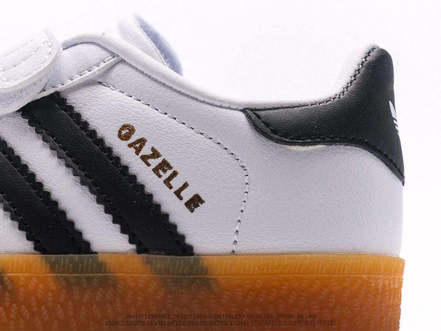 Step up your child's style with the Adidas Originals Gazelle Indoor Sneakers. Crafted for comfort, these low-top shoes feature a retro design that combines classic charm with modern functionality. With a non-slip and wear-resistant sole, these sneakers are perfect for everyday wear, providing stability and support for active little feet. Lightweight and breathable, they're designed to keep your child comfortable all day long. Perfect for casual outings or playdates, the Gazelle sneakers are a must-have addition to any child's footwear collection.