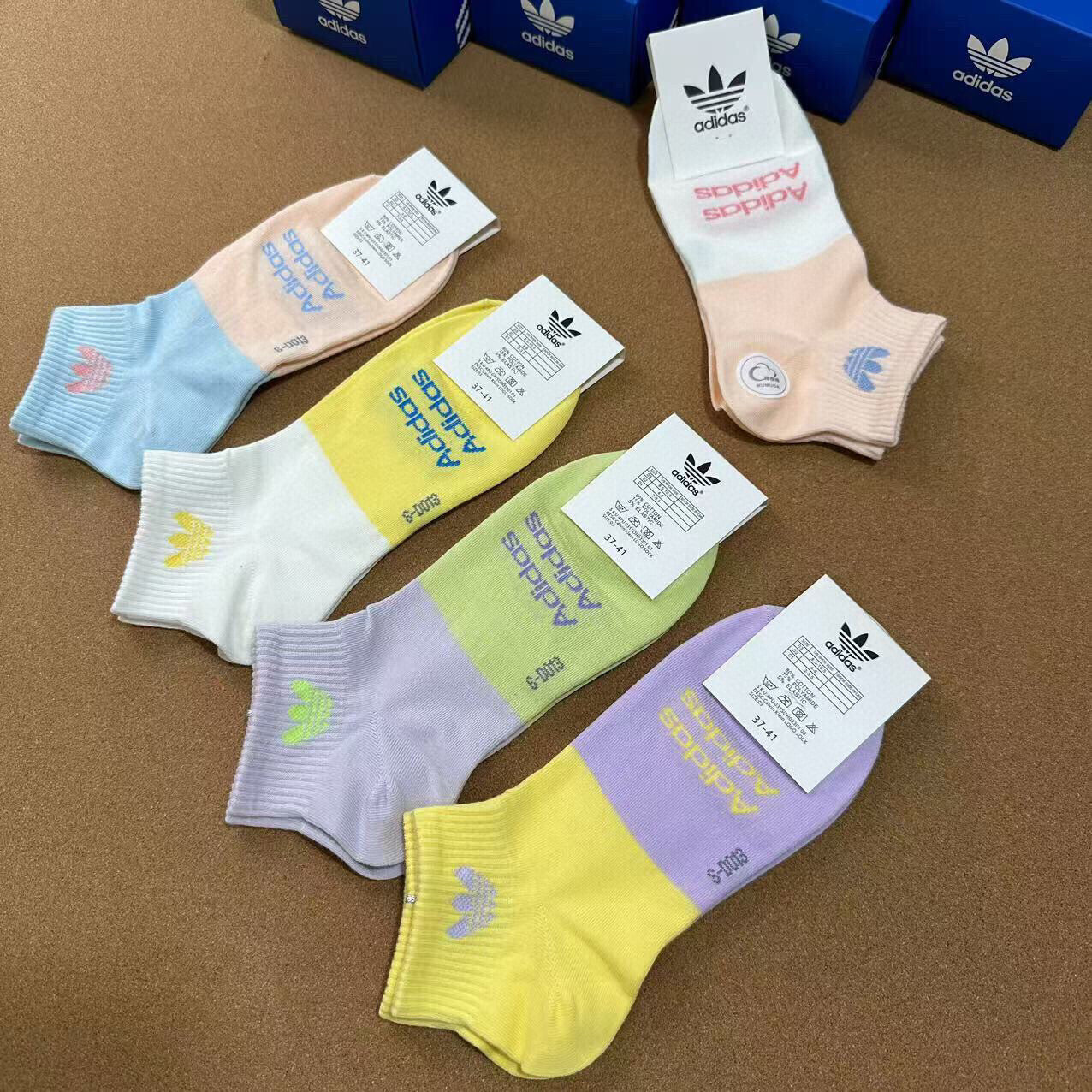 Elevate your sock game with the new Adidas Women's Color-Blocked Sock Set. Featuring the iconic clover logo, these socks showcase a stunning design that is both stylish and trendy. Made from 100% pure cotton, they offer exceptional softness and comfort for everyday wear. This set includes five pairs, making it a perfect addition to your wardrobe. Don’t miss out on this popular item of the year!