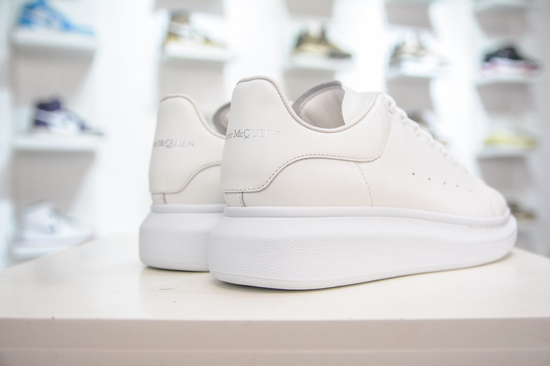 Step into timeless elegance with the Alexander McQueen Classic Platform Shoes. This M version features a sleek, thick-soled design that enhances your height by 7CM. Crafted from Italian-imported first-layer cowhide, these shoes showcase a unique textured finish with raised irregular small paint spots, reflecting their premium quality.