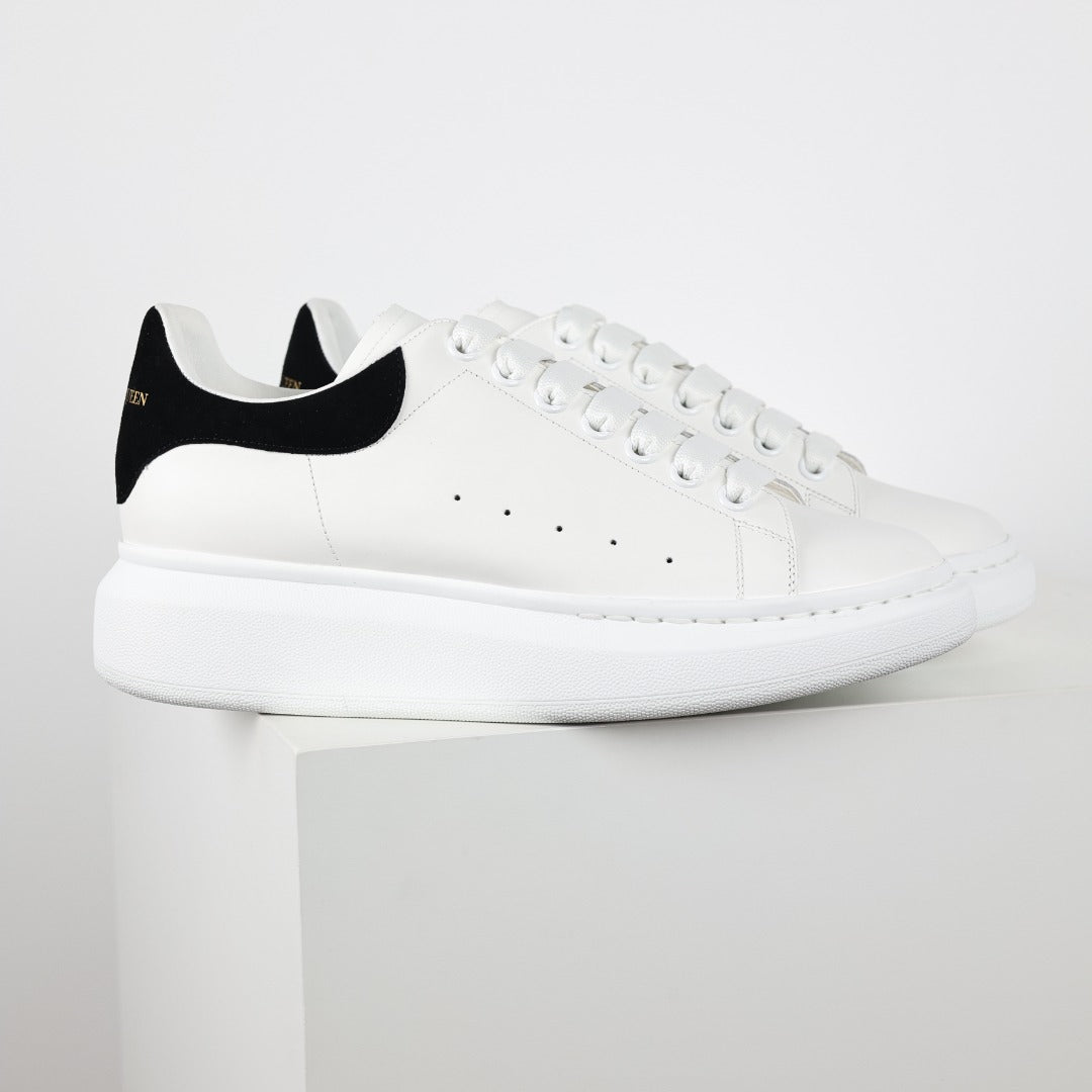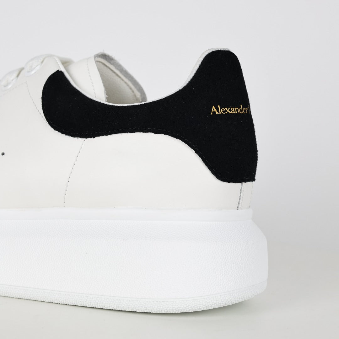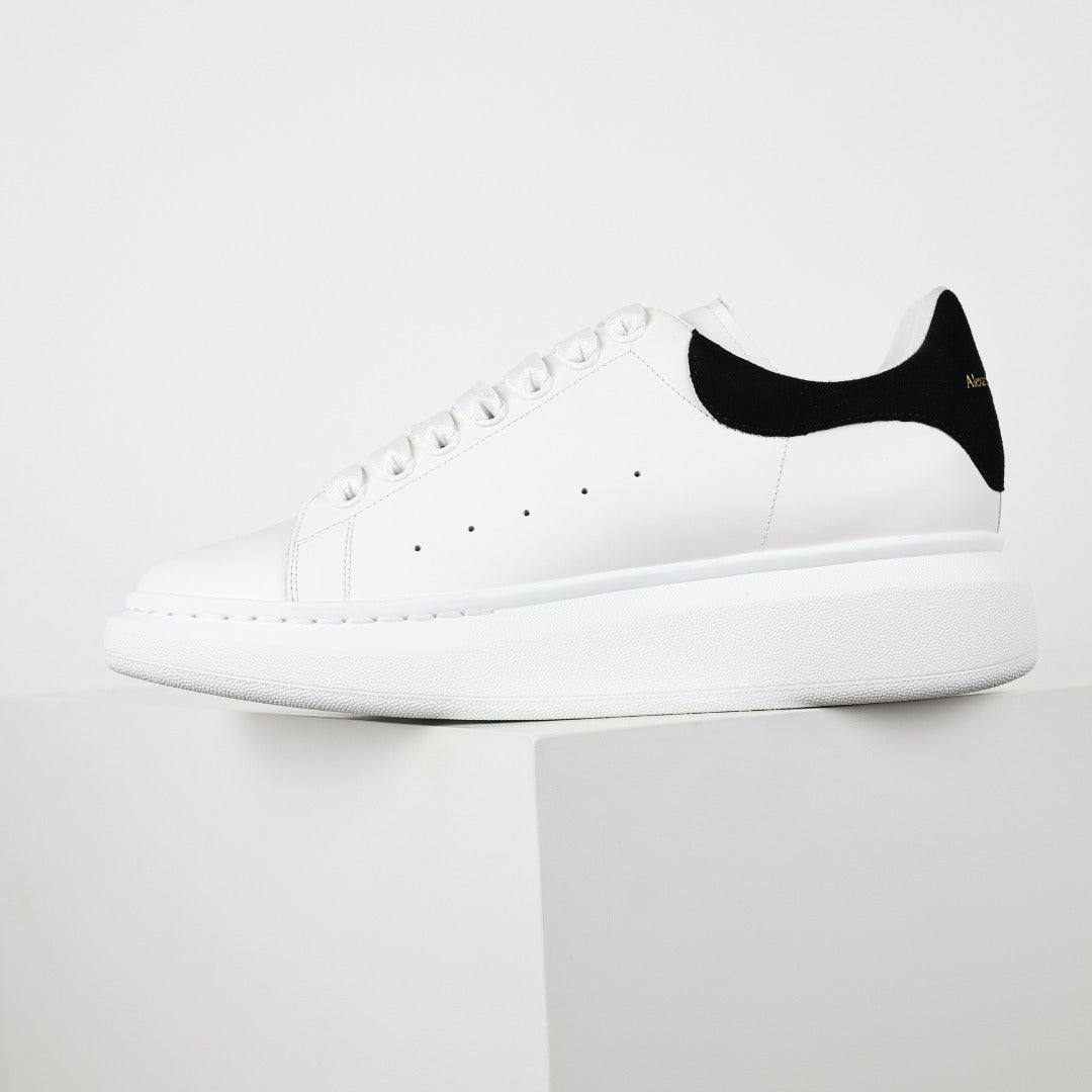 With a sleek round toe design, distinctive black suede detail on the heel, wide flat laces, and Alexander McQueen branding on both the tongue and back, these sneakers combine elegance with performance. Each pair includes an extra set of white laces for versatile styling.