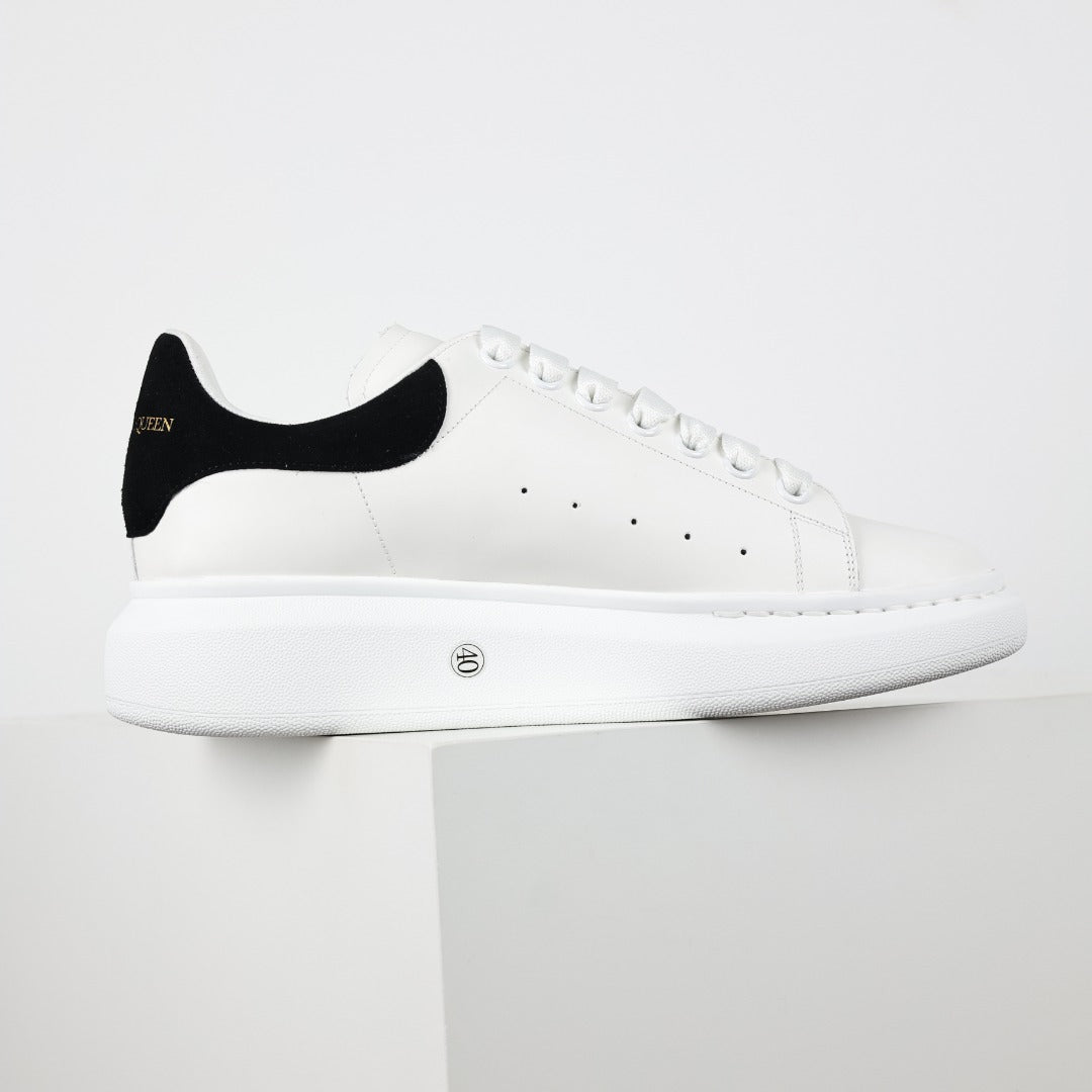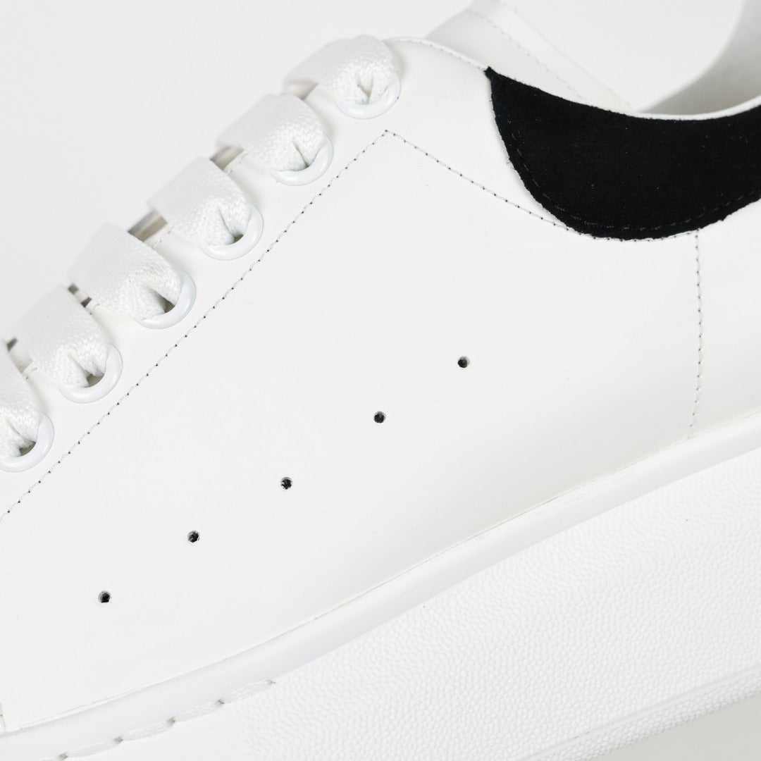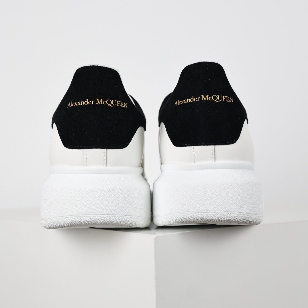 With a sleek round toe design, distinctive black suede detail on the heel, wide flat laces, and Alexander McQueen branding on both the tongue and back, these sneakers combine elegance with performance. Each pair includes an extra set of white laces for versatile styling.