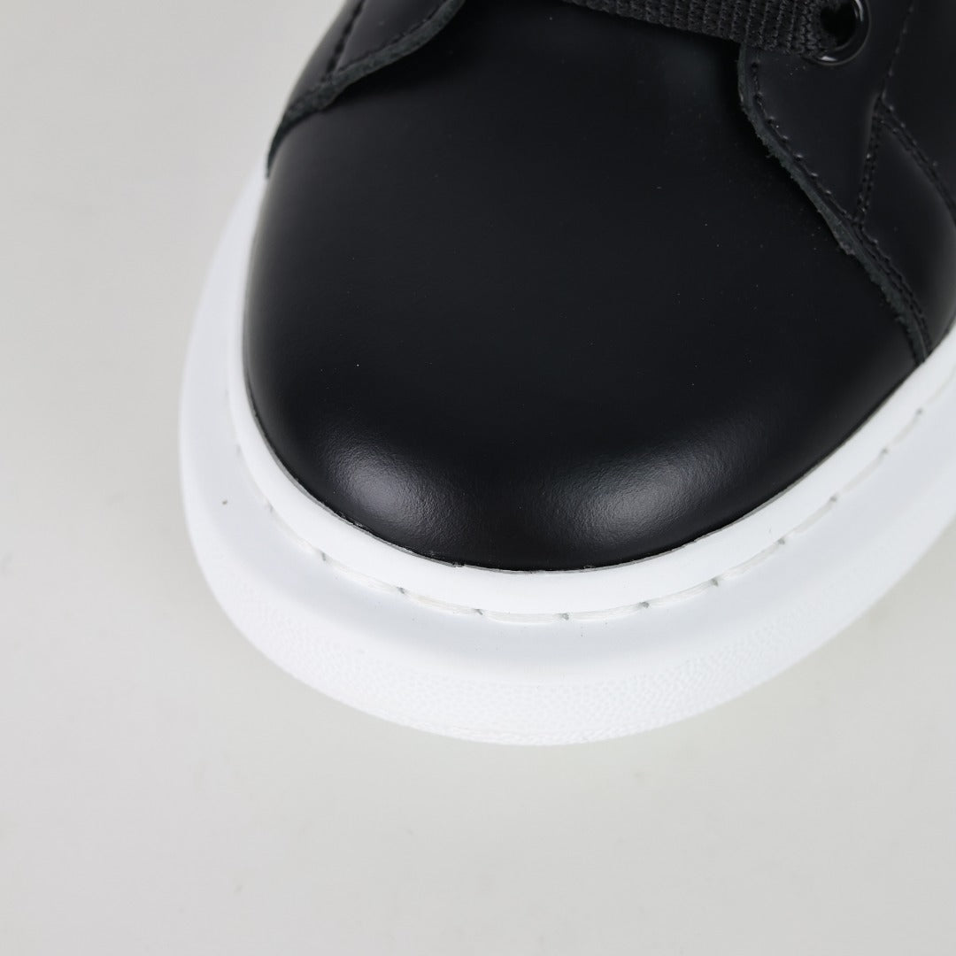 Alexander McQueen White Calfskin Lace-Up Sneakers with Black Accents