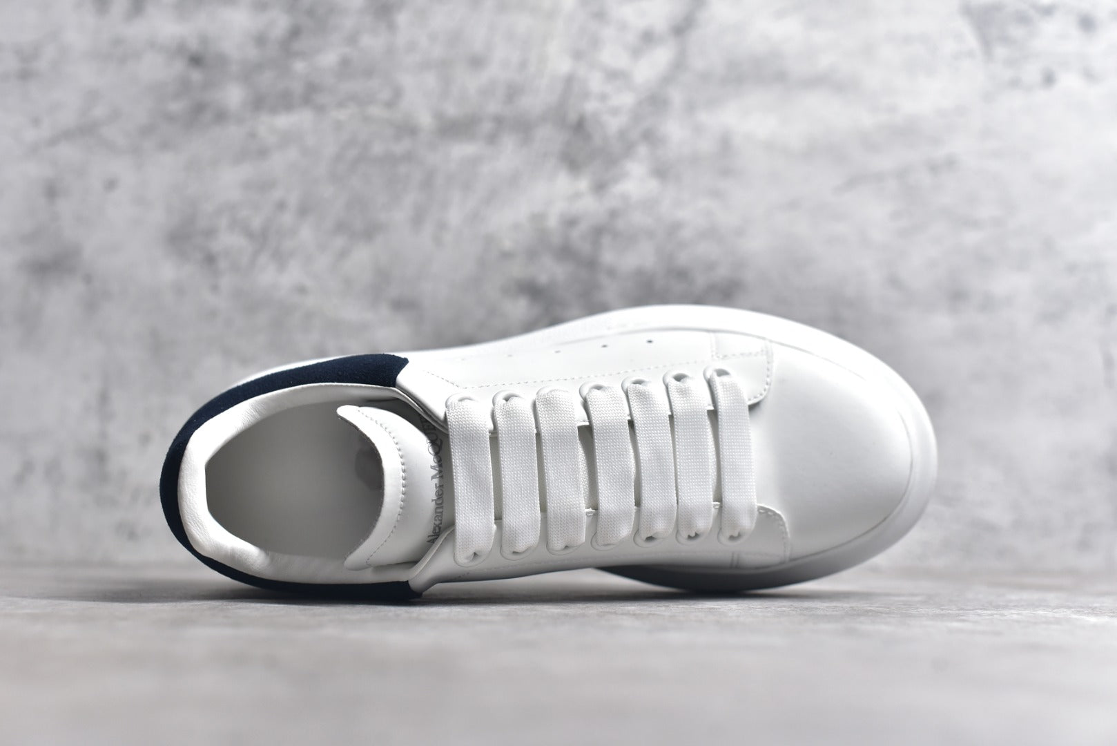 The sneakers feature a stylish round toe and black suede detailing on the heel. With wide flat laces and prominent Alexander McQueen branding on both the tongue and back, these shoes are as fashionable as they are functional. The high-density vacuum sole offers superior support, while an additional pair of laces allows for personalized styling.