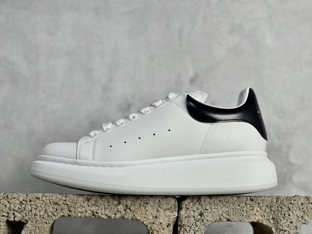 - **Elegant Design:** The sleek white calfskin upper is complemented by a round toe and stylish black suede detail on the heel. Wide flat laces and Alexander McQueen branding on the tongue and back enhance the overall sophistication.