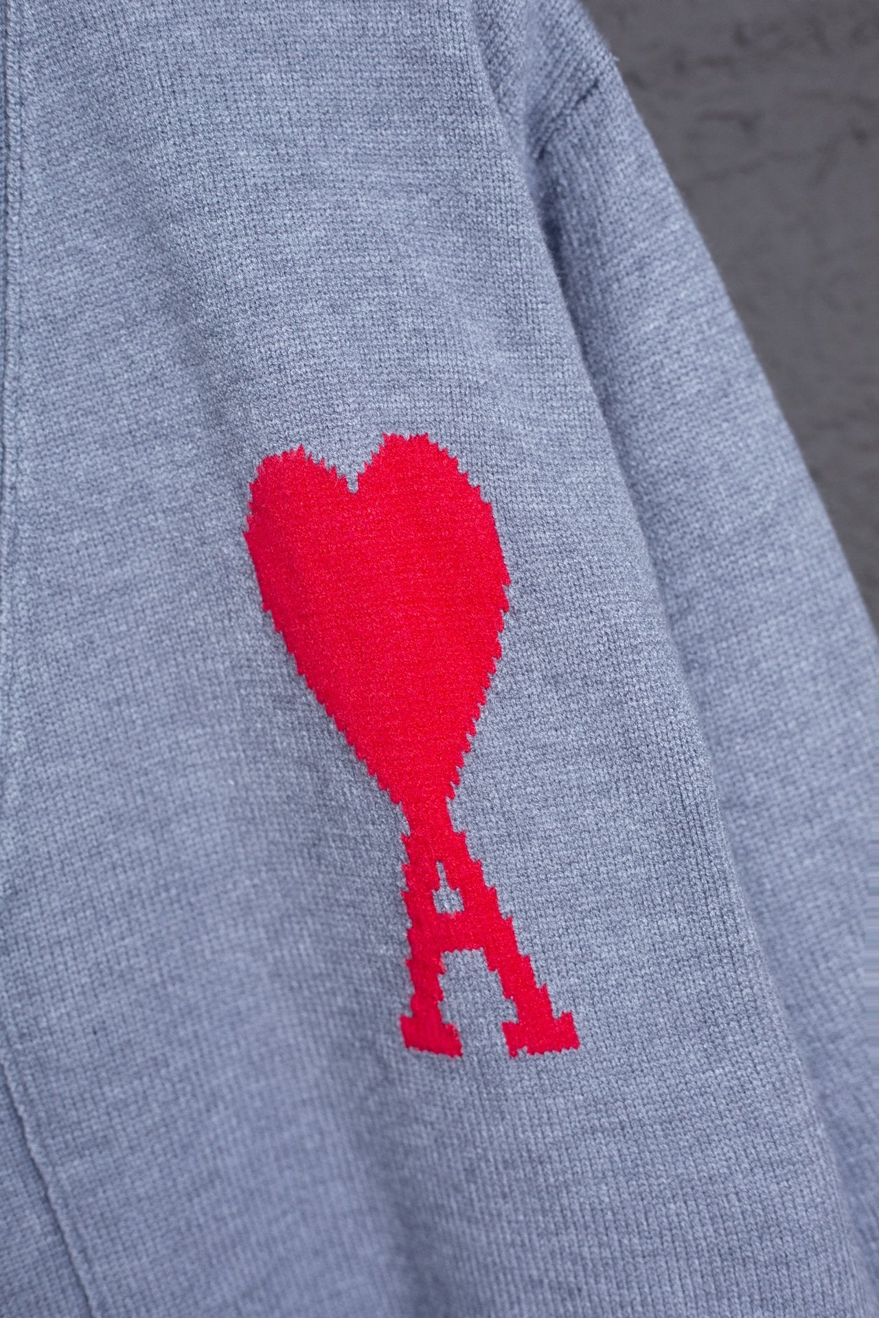 AMI Classic Big Heart Jacquard Cardigan Sweater - Dark Gray