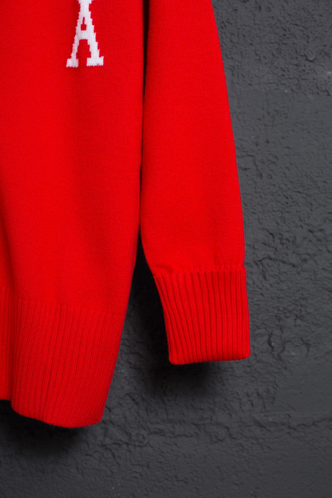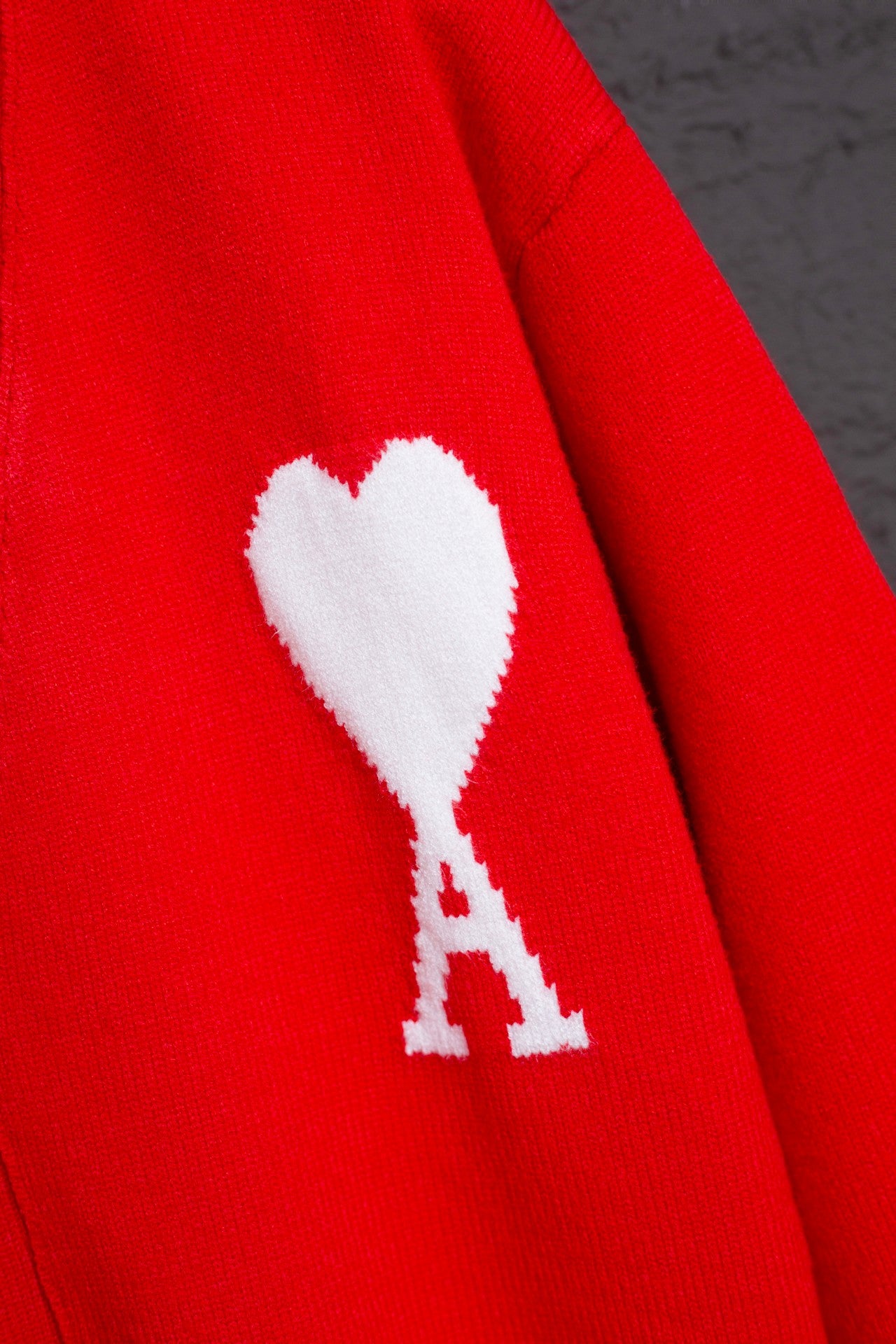 AMI Classic Big Heart Jacquard Cardigan Sweater in Red - Sizes S-XL