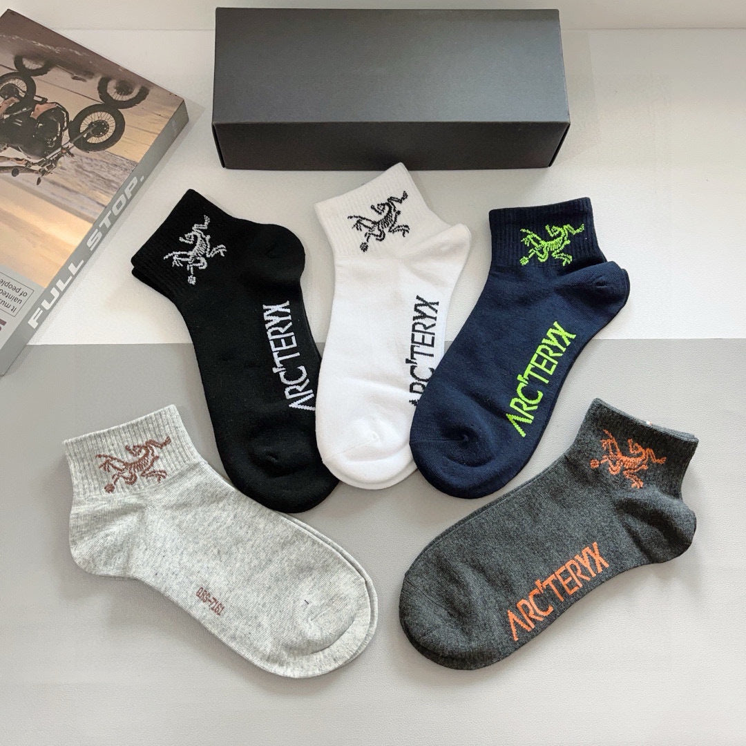 Arc'teryx 2024 Spring Collection High Cotton Boat Socks - 5 Pairs