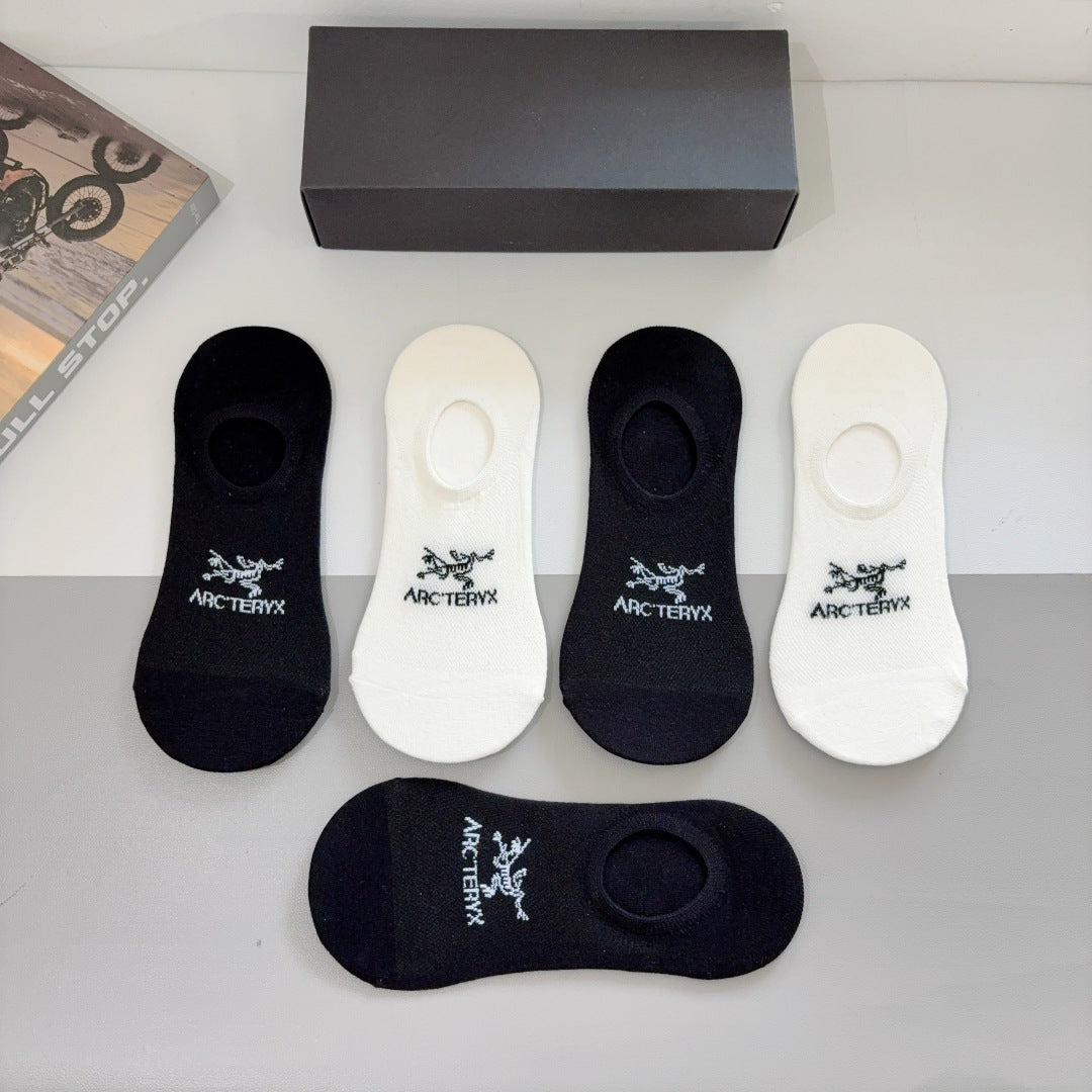 Elevate your sock collection with the Arcteryx 2025 Bamboo Cotton Boat Socks. Each box contains five pairs, thoughtfully packaged for convenience. Crafted with premium bamboo cotton, these socks feature a classic pattern and the iconic Arcteryx logo, making them a stylish choice for any outfit. Perfect for fashion enthusiasts and trendsetters alike, these socks blend comfort with contemporary design. Don't miss out on this essential accessory for your wardrobe!
