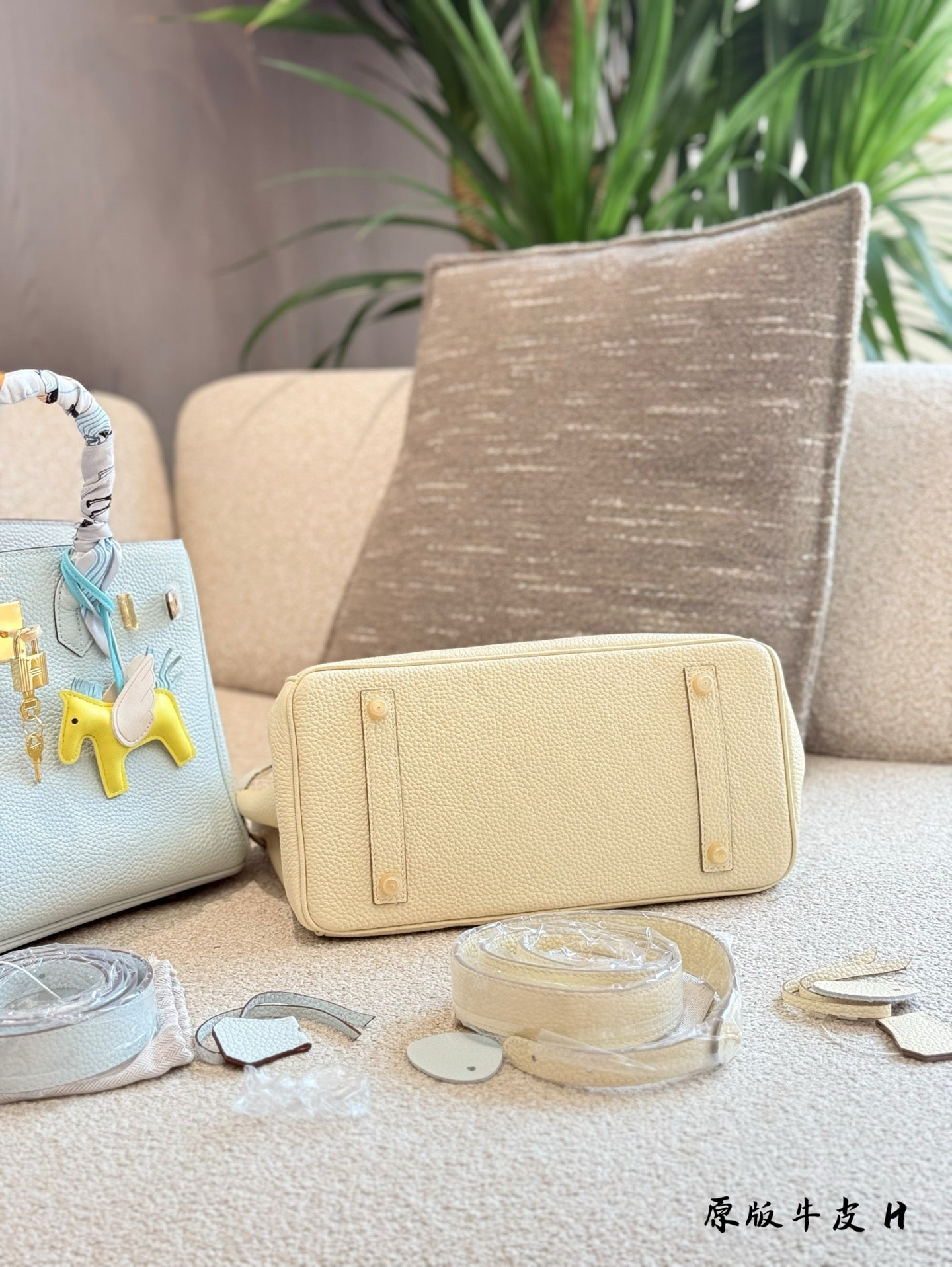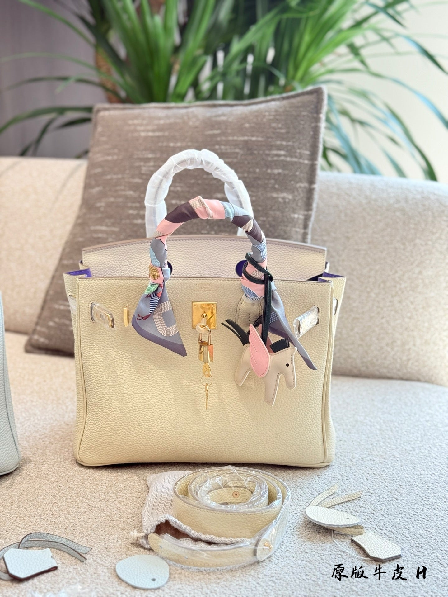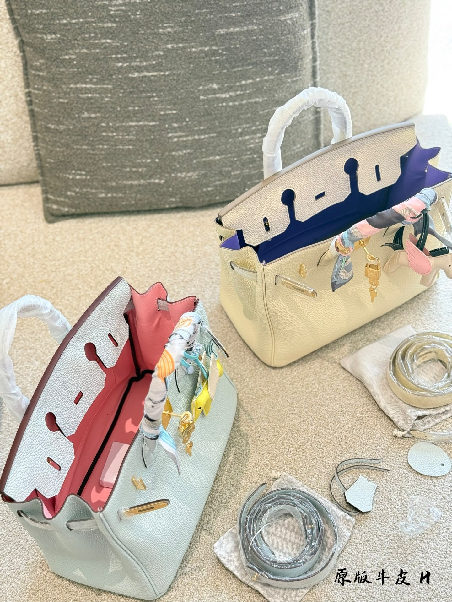 Elevate your accessory collection with the iconic Hermes Birkin bag, available in striking blue and milkshake white hues—perfect for summer outings. Crafted from original cowhide and featuring a durable Togo leather inseam, this timeless classic offers both style and functionality. With its casual elegance, the Birkin is easy to care for, making it a staple for any wardrobe. This 30cm version comes beautifully packaged in its original box and includes a chic scarf pendant for added flair. Experience luxury like never before with this must-have handbag.