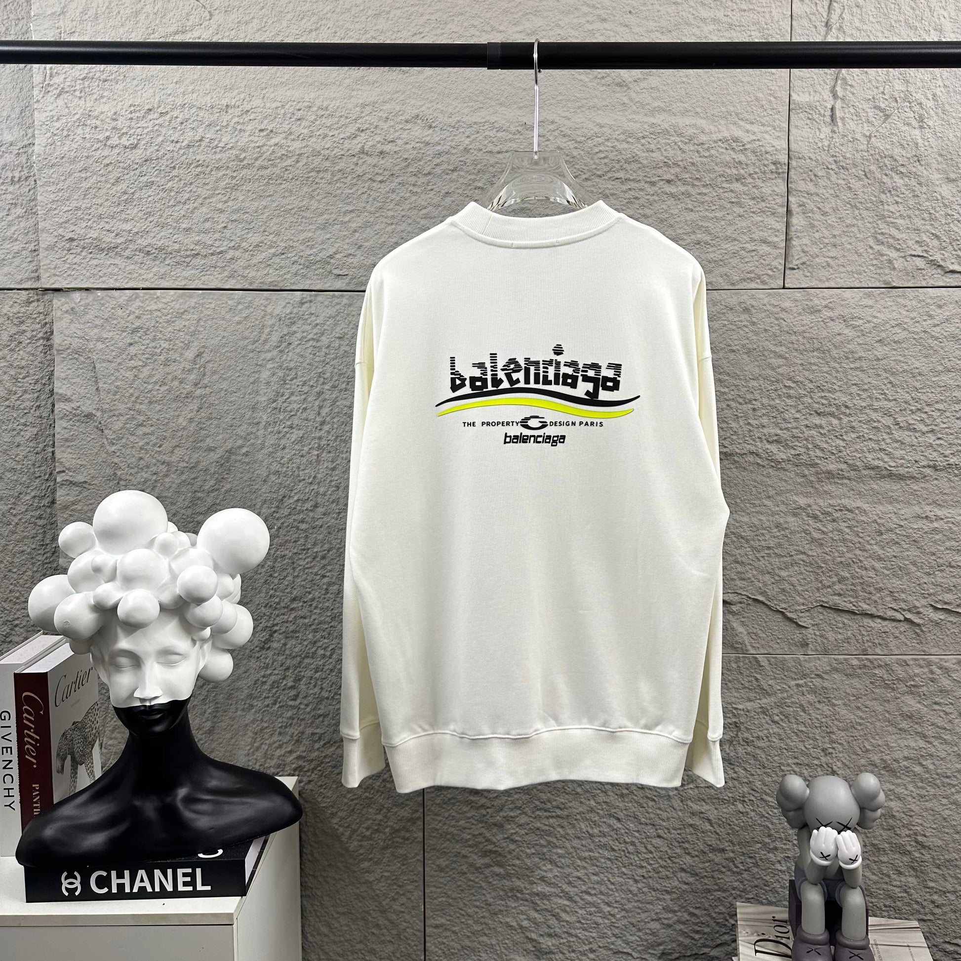 Introducing the BALENCI*GA Paris 2025 Long-Sleeved Sweatshirt, designed for the early autumn and winter seasons. This stylish pullover features a classic round neck design and is crafted from premium customized terry fabric, ensuring comfort and softness. The standout detail is the thick plate three-dimensional silicone technology, which adds a unique touch to the classic letter motif.