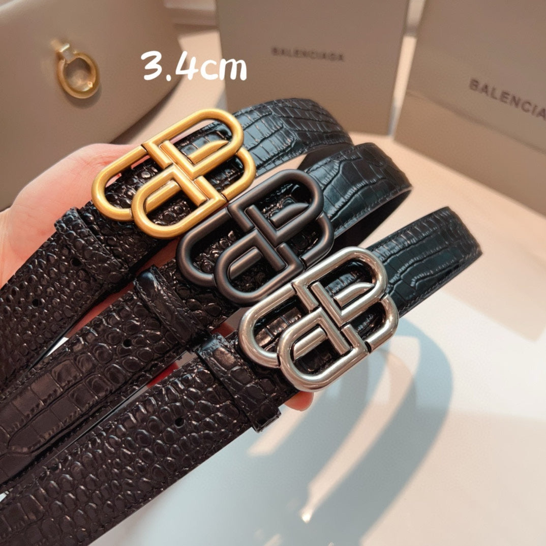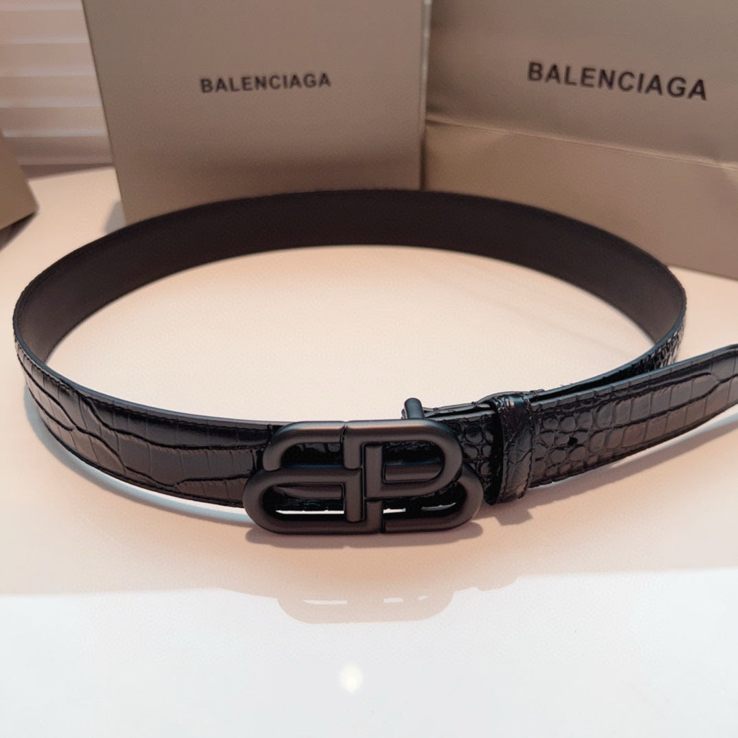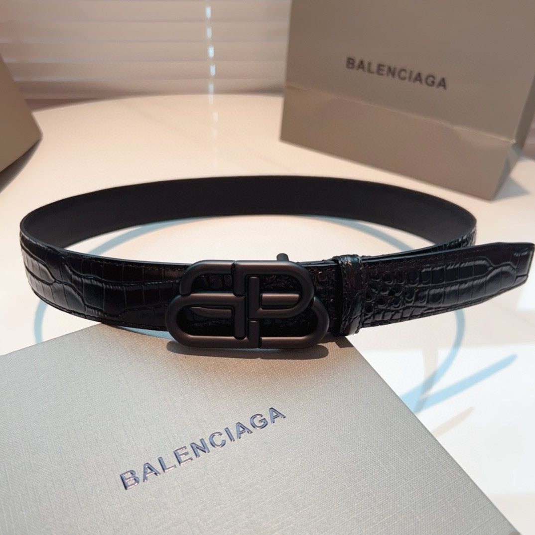 Elevate your style with the Balenciaga Double-Sided Belt, featuring a luxurious crocodile pattern crafted from high-quality Italian matte calfskin. This sophisticated accessory showcases a retro buckle and measures 3.5 inches in width, making it a versatile addition to any wardrobe. Wear it with either side for a unique look, seamlessly transitioning from casual to formal occasions. Perfect for fashion-forward individuals who appreciate both elegance and functionality.