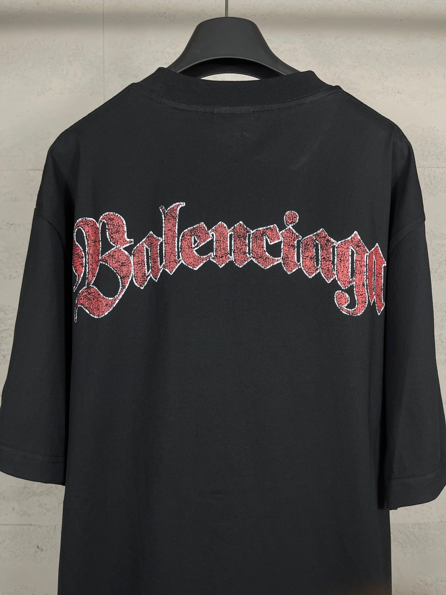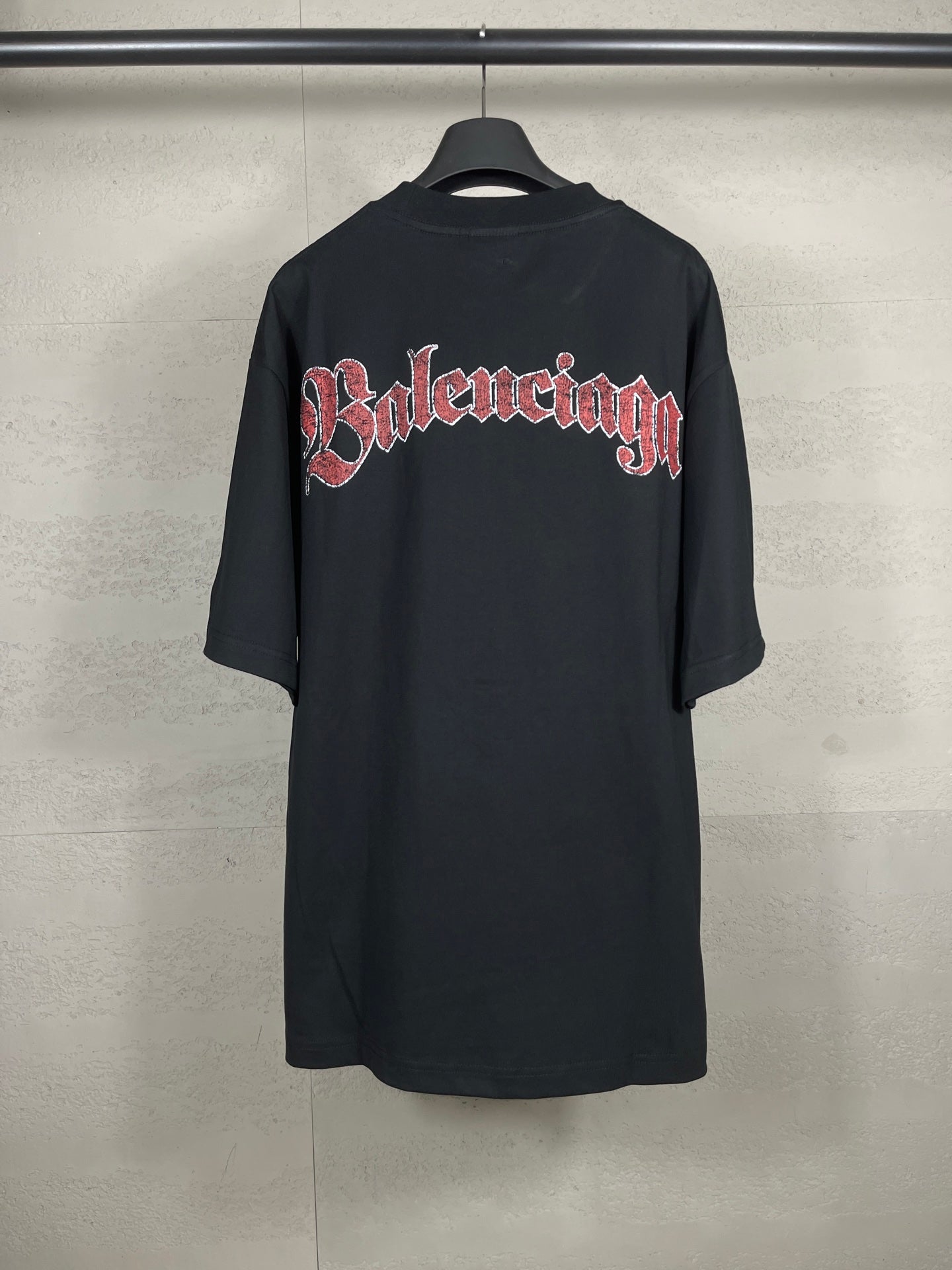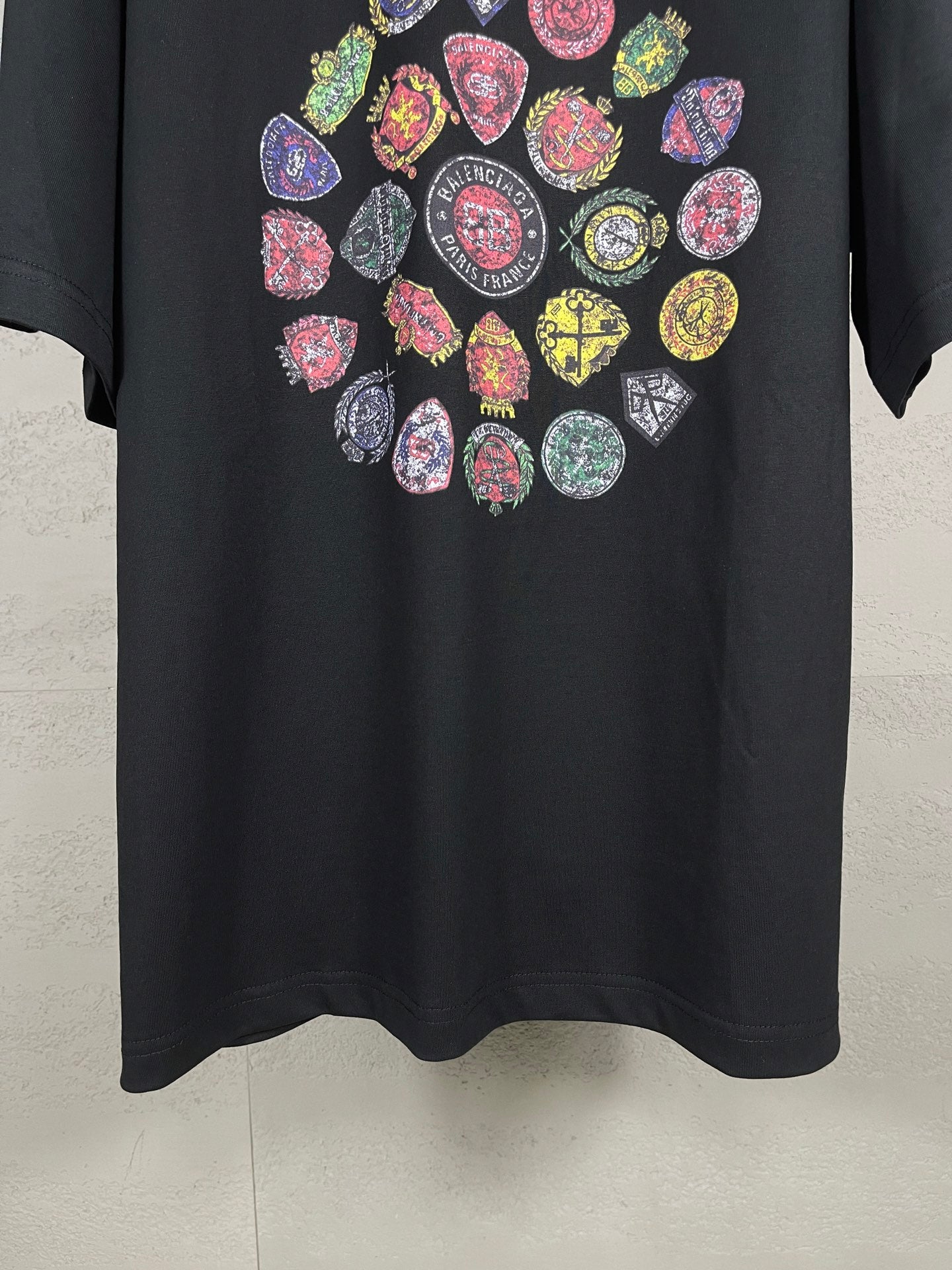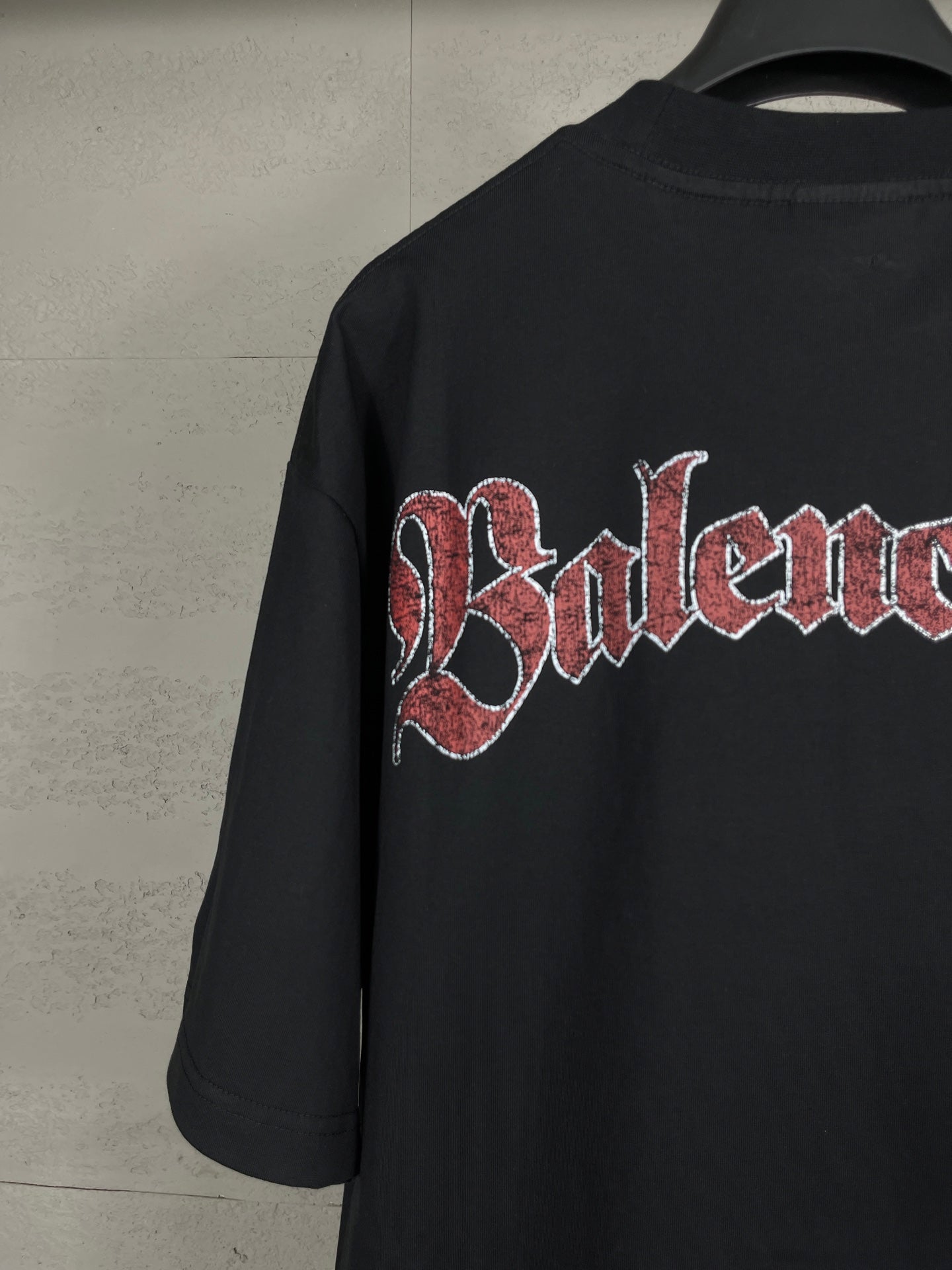 Elevate your wardrobe with the Balenciaga Paris SS25 Iconic Logo T-Shirt. This premium short-sleeved tee features a striking front badge icon and a statement logo, direct-printed for a crisp, three-dimensional effect. Crafted from custom-woven, dyed cotton double yarn in Paris, the fabric is soft, breathable, and weighs 260 grams, ensuring both comfort and durability.