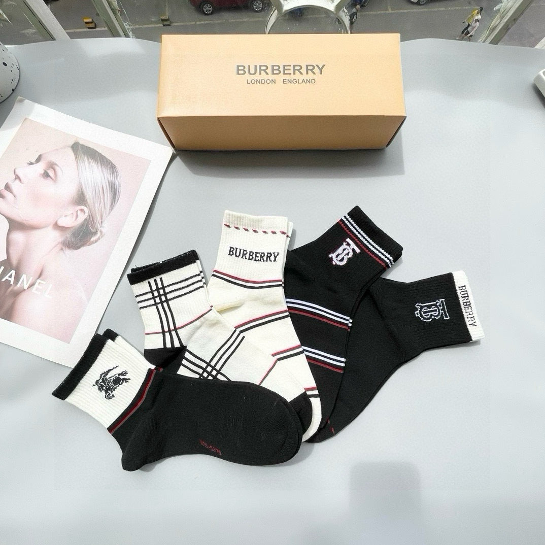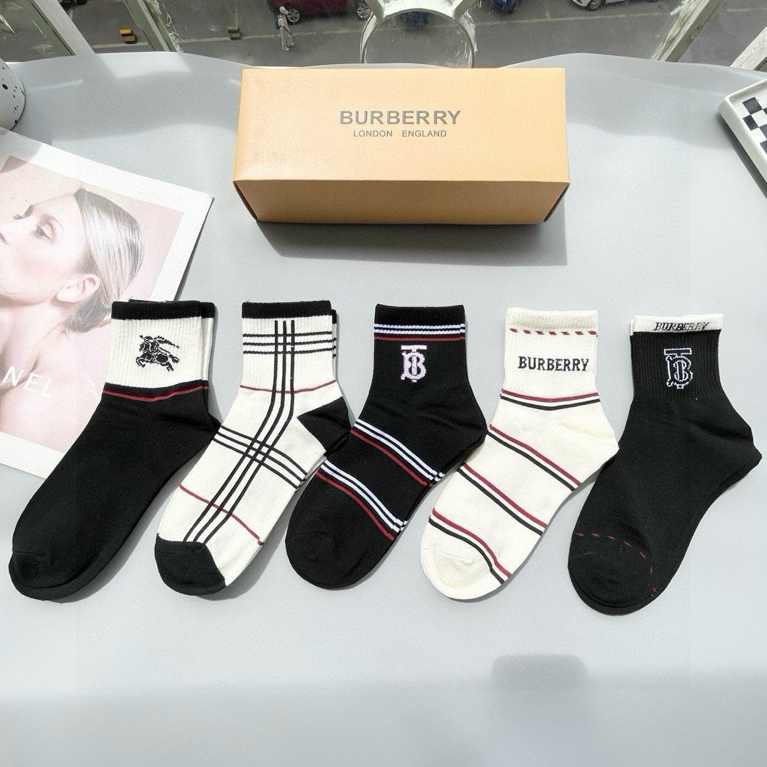 Burberry Bagh Mid-Calf Socks - Trendy Five Pair Set
