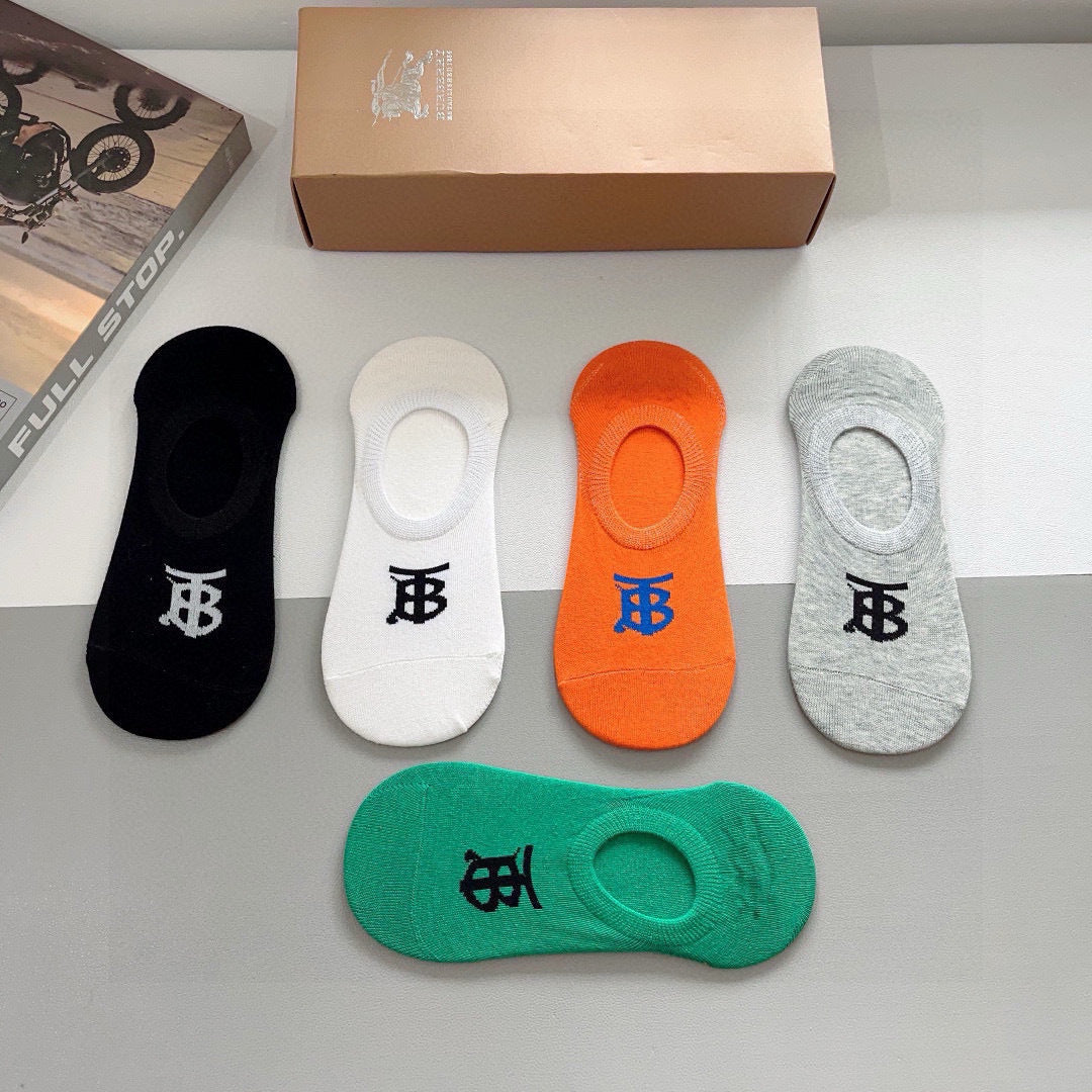 Elevate your wardrobe with our Burberry crew socks, featuring a stylish design that is perfect for any fashionista. This set includes five pairs, all neatly packaged for your convenience. Crafted from high-quality combed cotton, these socks offer exceptional softness, breathability, and durability. Whether you're dressing up for a special occasion or adding a trendy touch to your everyday outfit, these socks are the perfect versatile accessory. Treat yourself to the comfort and style you deserve!