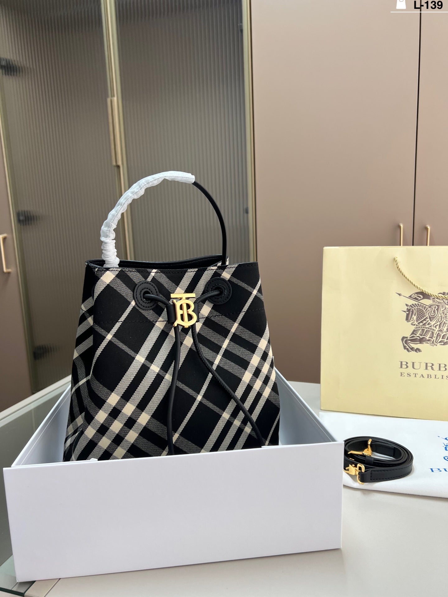 Burberry Drawstring Bucket Bag - Stylish Nylon Storage Bag