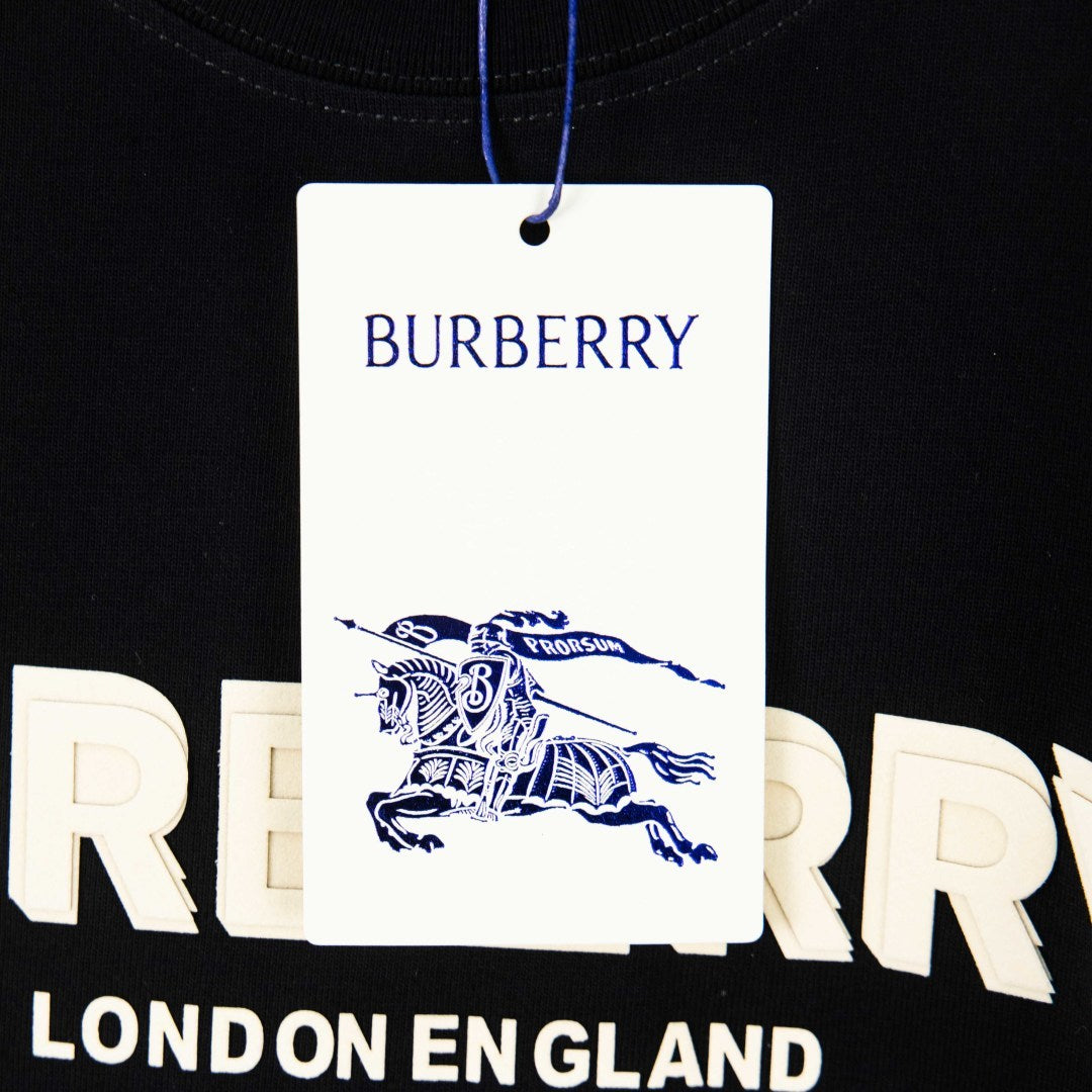 Elevate your wardrobe with the Burberry 270g Round Neck Short-Sleeve T-Shirt, crafted from premium original fabric for unmatched quality. This stylish tee features a distinctive three-dimensional foaming logo embossing, delivering a blend of classic elegance and modern personality. Available in timeless black and white, it effortlessly complements any outfit.