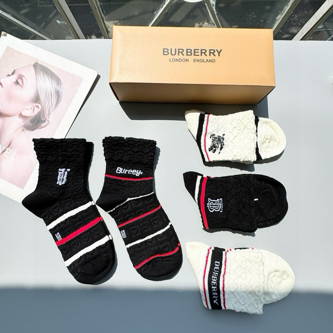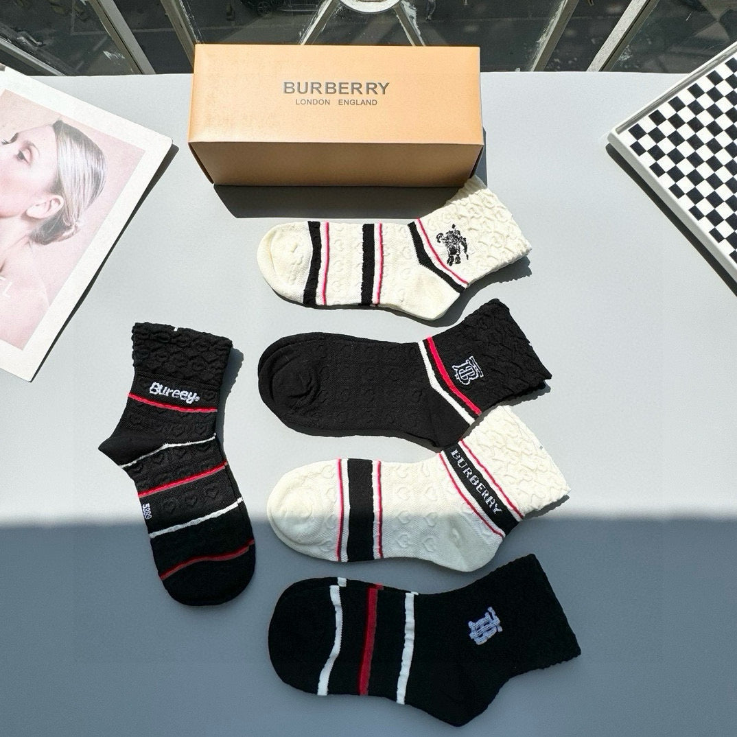 Burberry High-End Mid-Calf Socks - Five Pairs in Box