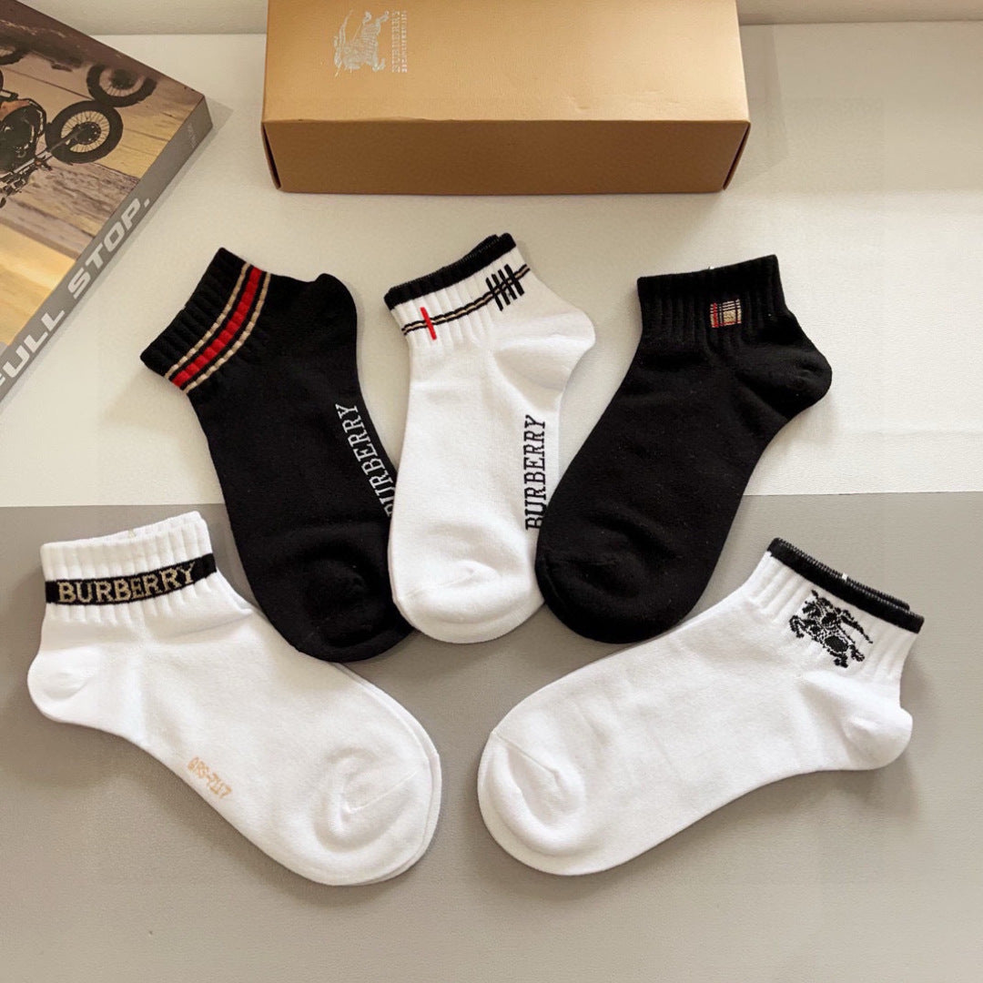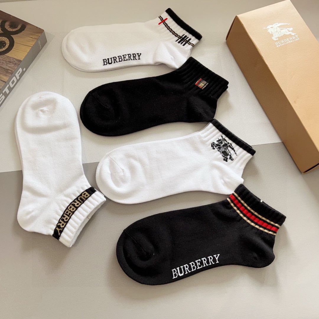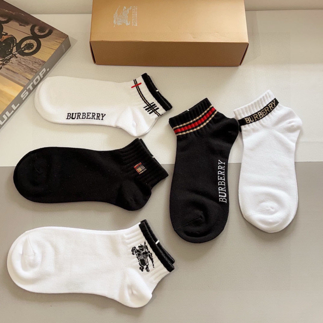 Elevate your style with Burberry's iconic mid-length socks, expertly crafted from a premium wool blend. Each box contains five pairs, making it a perfect addition to any fashionista's collection. Featuring the timeless Burberry logo, these socks offer a unique blend of comfort and style. The combed cotton fabric ensures a soft and breathable experience, while the chic design seamlessly complements any outfit. Treat yourself to the luxury you deserve!