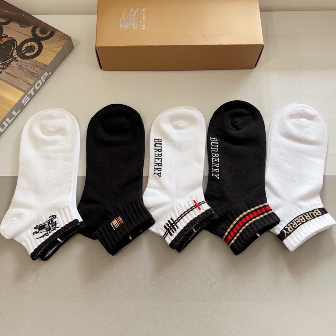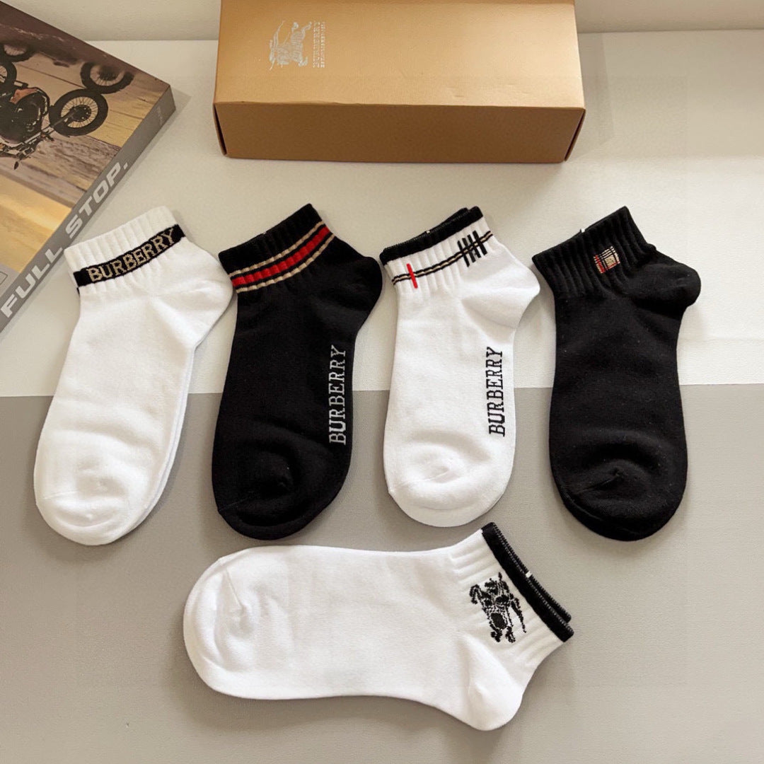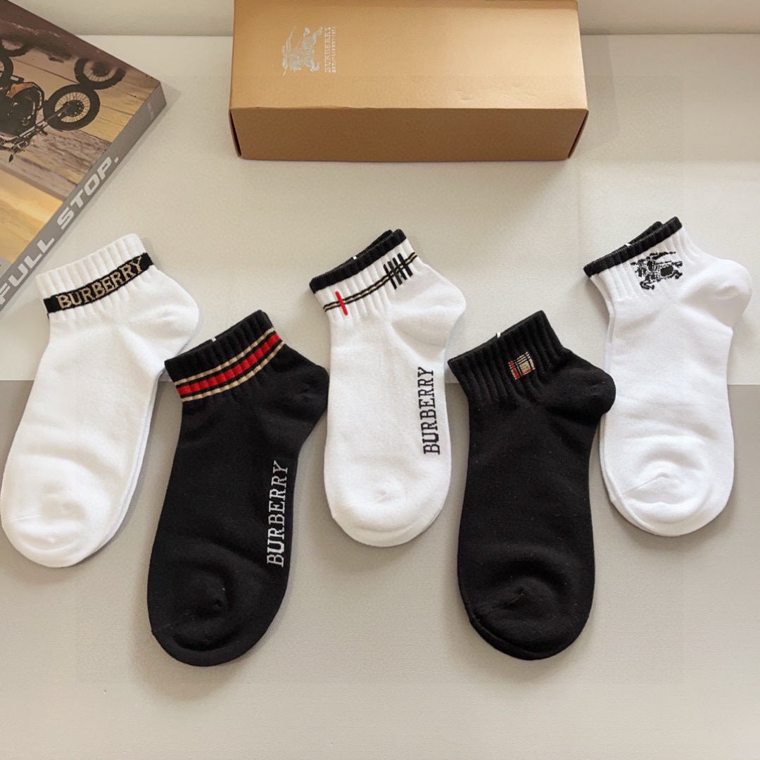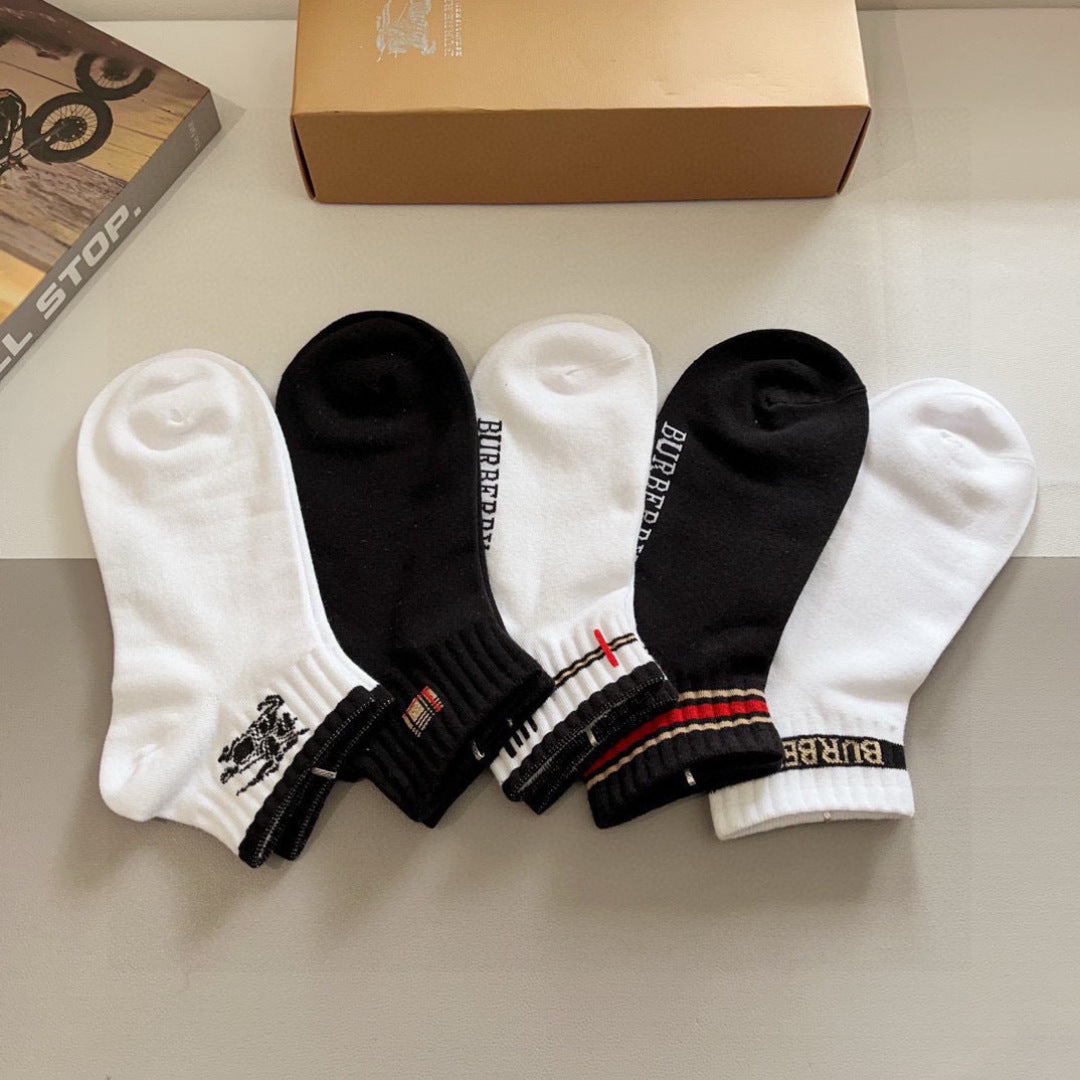 Elevate your style with Burberry's iconic mid-length socks, expertly crafted from a premium wool blend. Each box contains five pairs, making it a perfect addition to any fashionista's collection. Featuring the timeless Burberry logo, these socks offer a unique blend of comfort and style. The combed cotton fabric ensures a soft and breathable experience, while the chic design seamlessly complements any outfit. Treat yourself to the luxury you deserve!