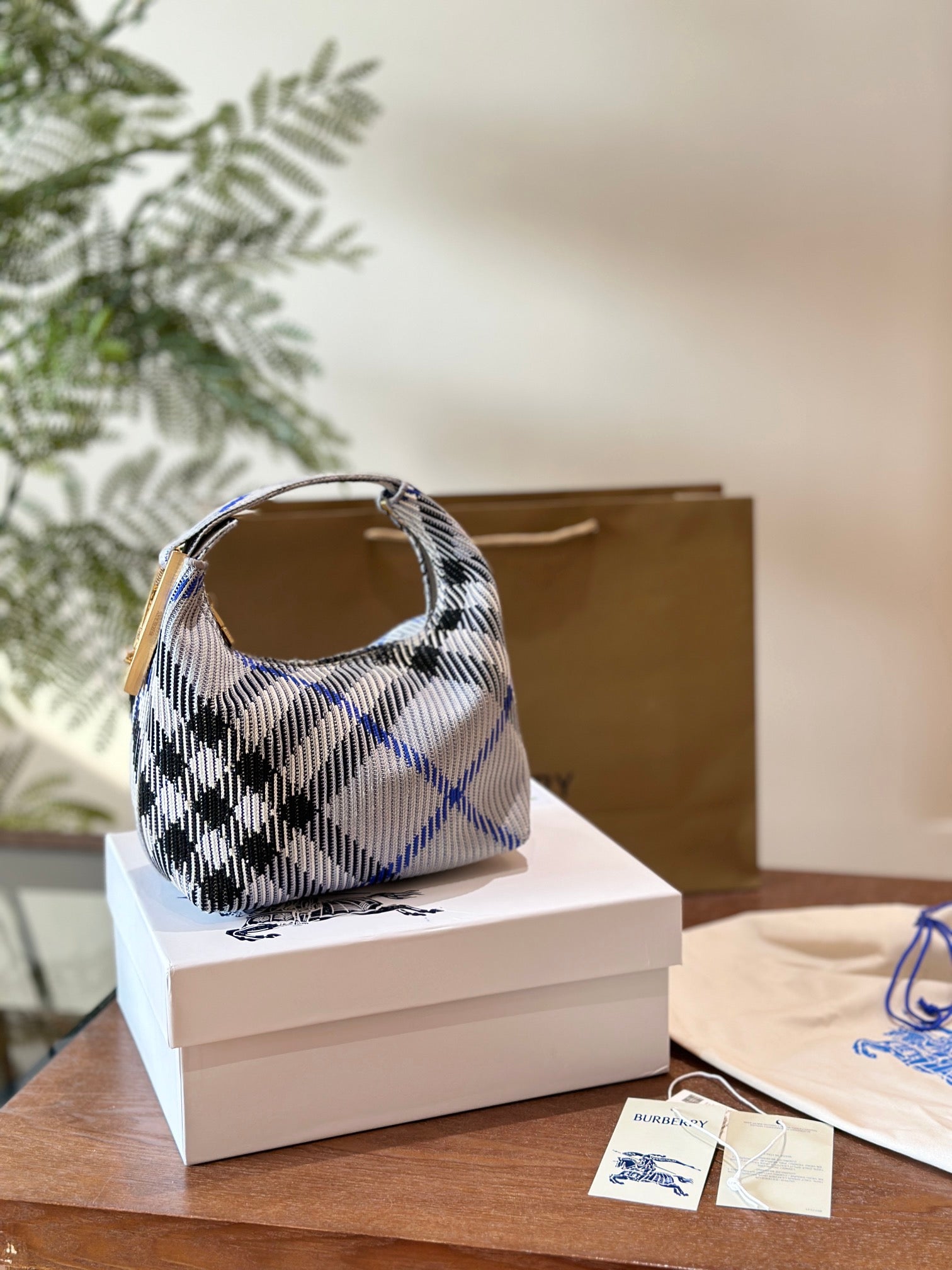 Burberry Peg Series Handbag - Lightweight Checkered Design