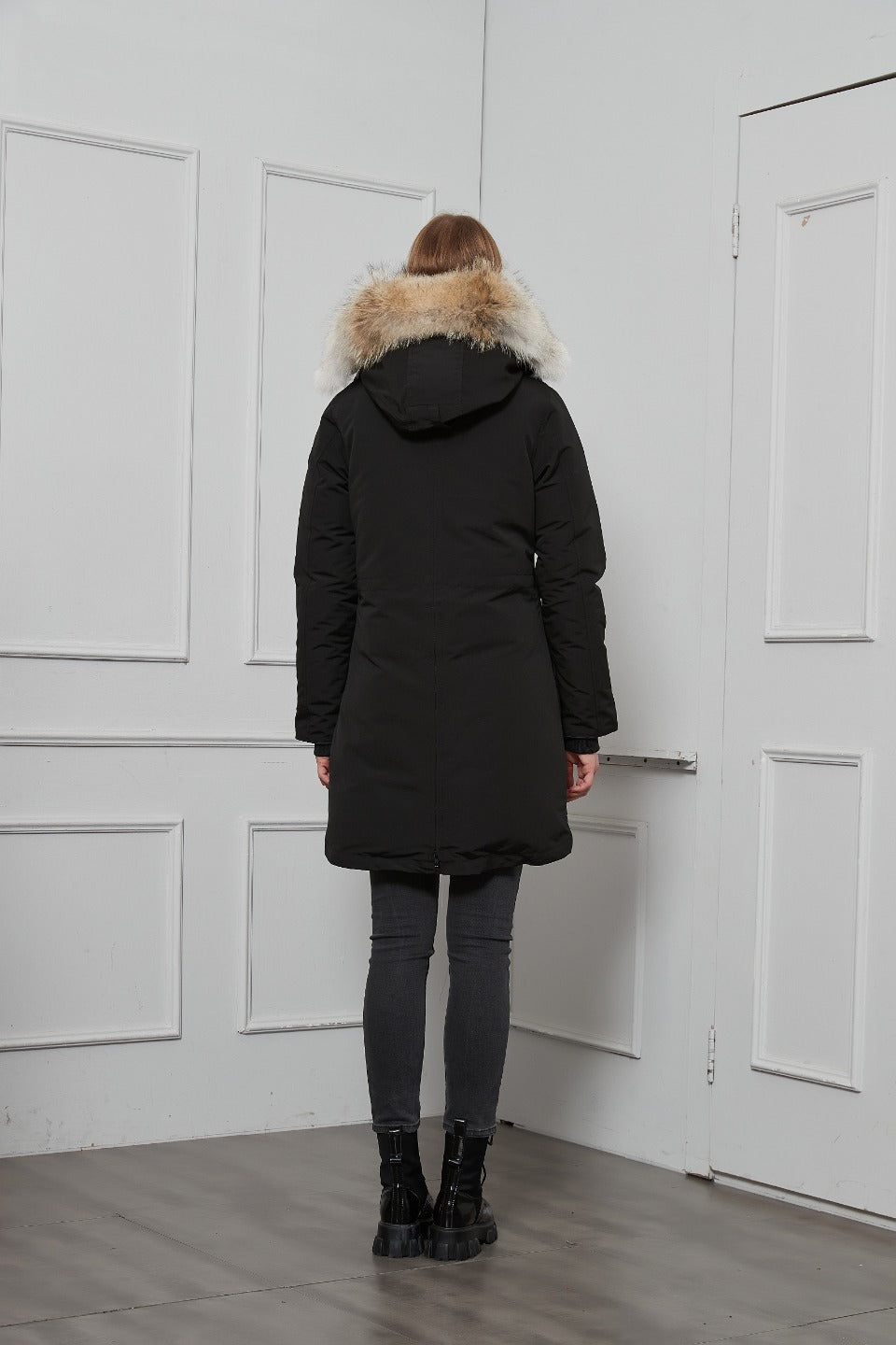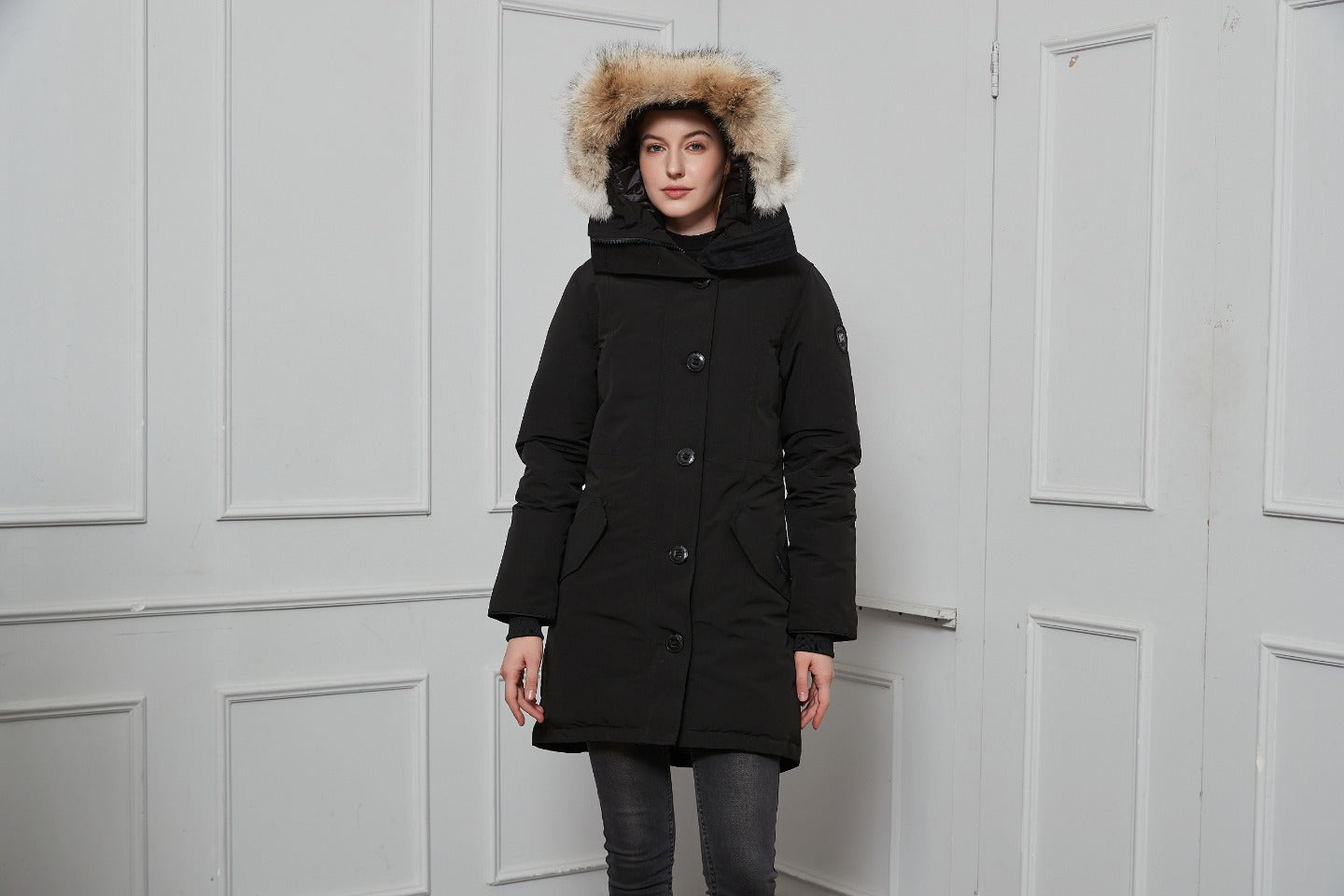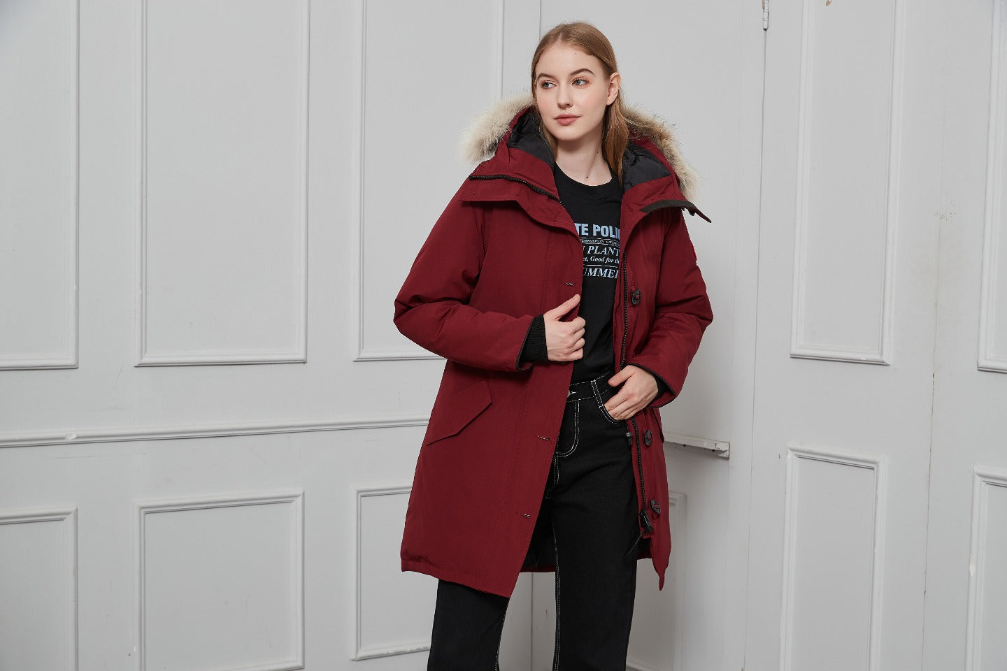 - **Distinctive Flair**: Outfitted with a Western Canadian Green Wolf Collar, each jacket is designed to make a statement.