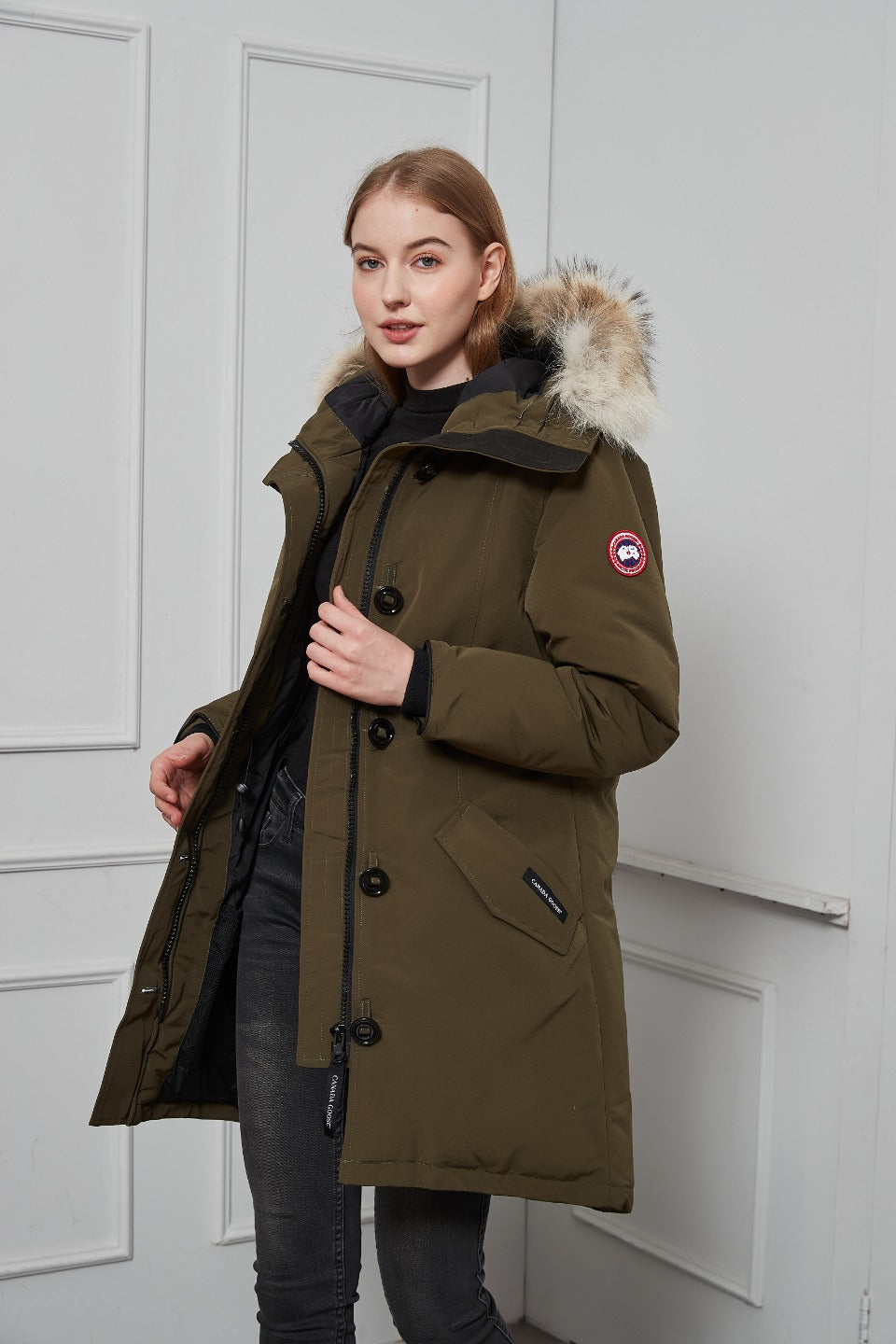 - **Stylish Features**: Featuring a Western Canadian Green Wolf Collar for a touch of elegance and warmth.