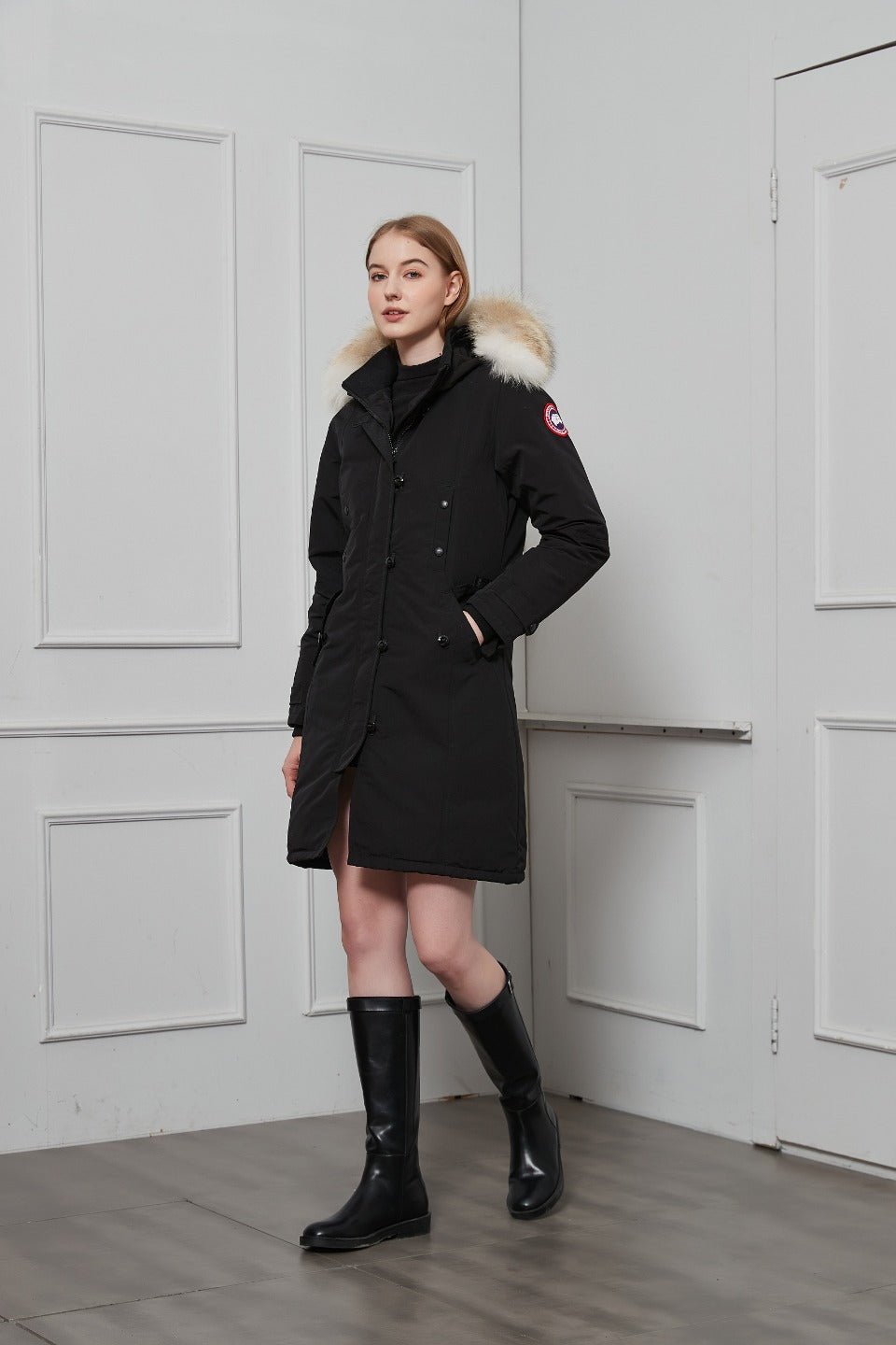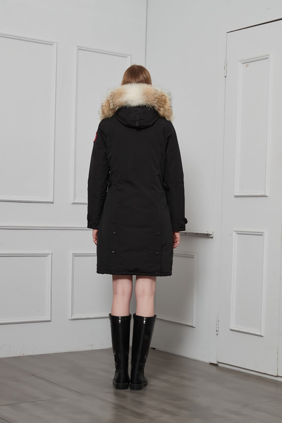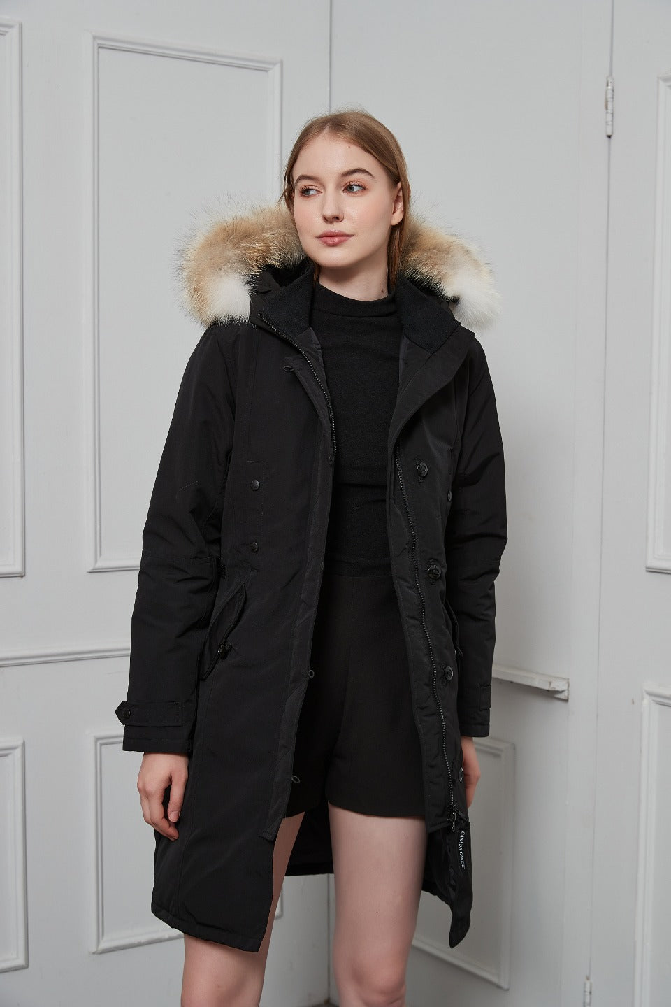 - **Iconic Green Wolf Collar:** A Western Canadian green wolf collar adds both style and functionality to your cold-weather gear.