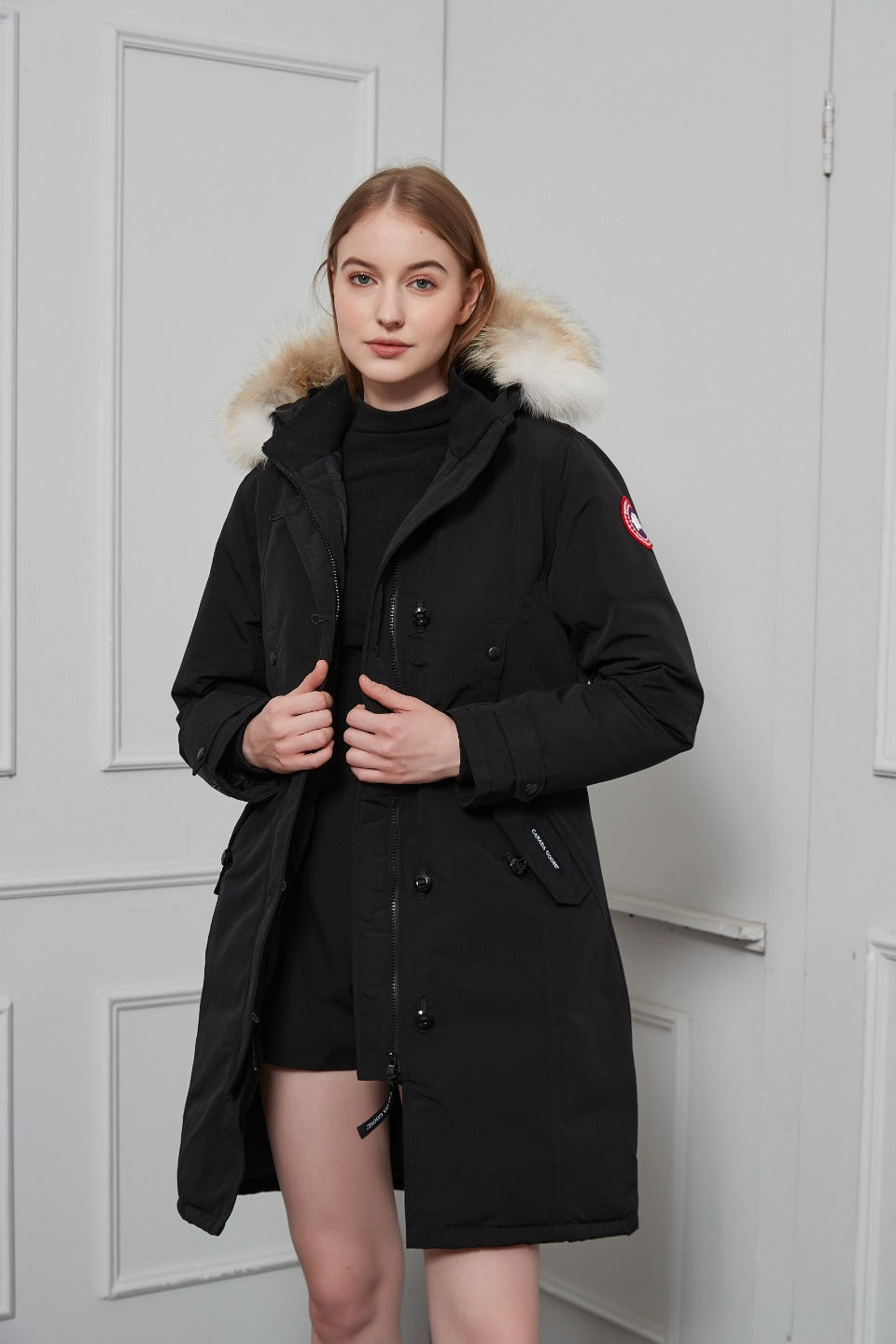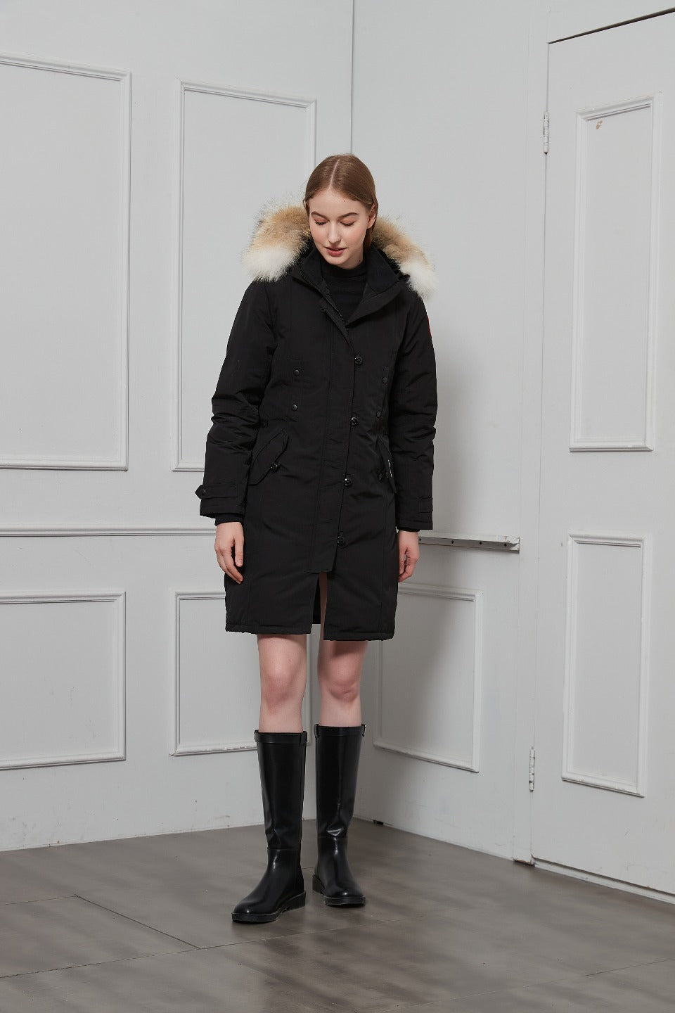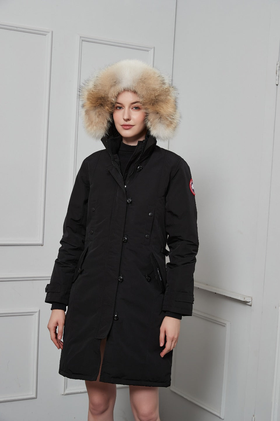 - **Iconic Green Wolf Collar:** A Western Canadian green wolf collar adds both style and functionality to your cold-weather gear.