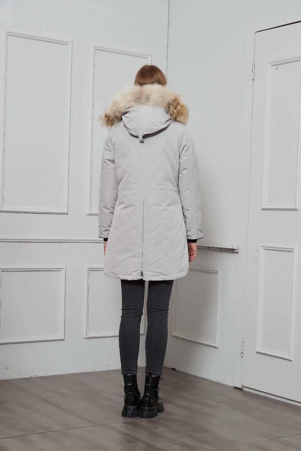 - **Luxurious Collar**: Adorned with a Western Canadian Green Wolf Collar for an elevated style.