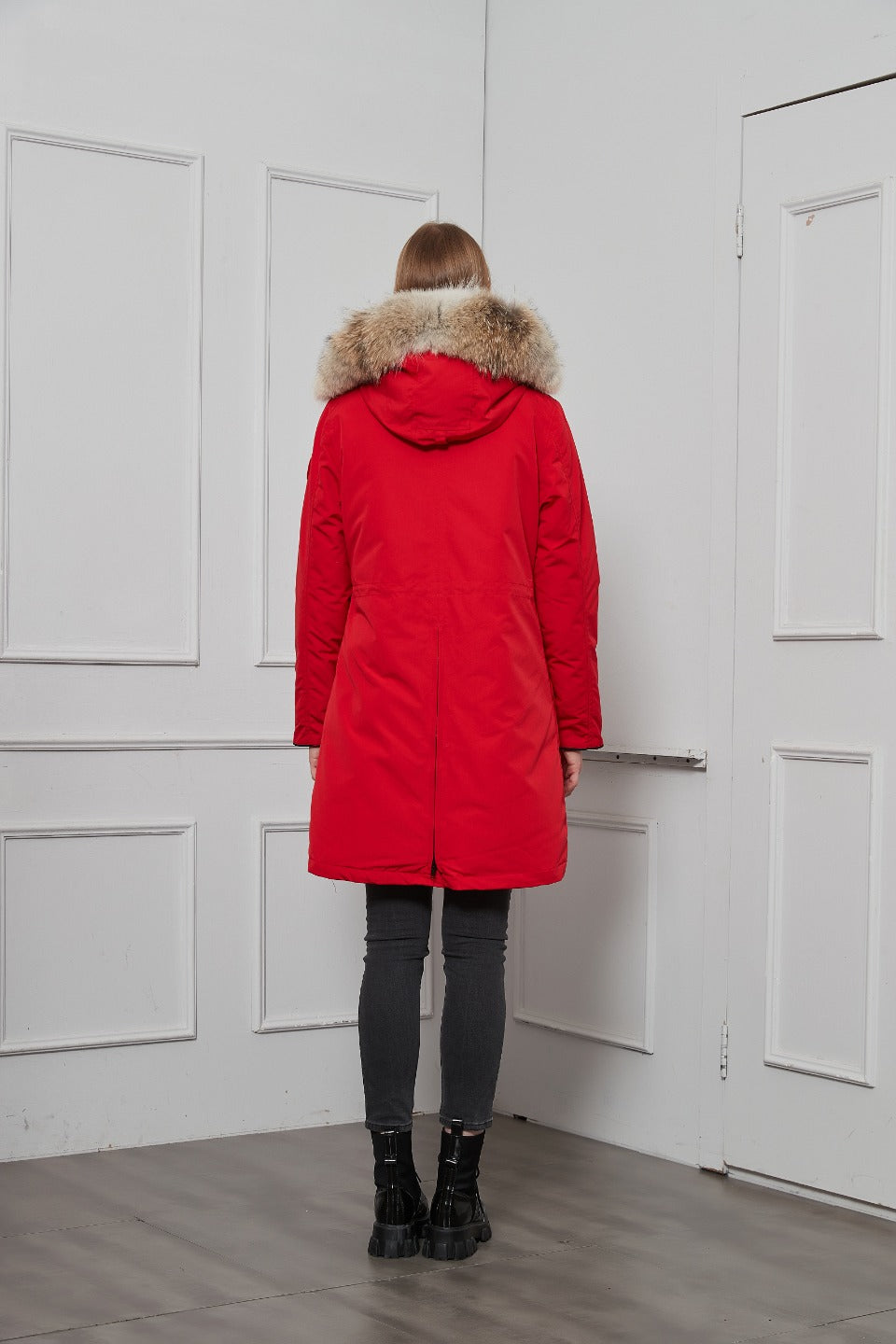 - **Stylish Collar:** Adorned with a Western Canadian Green Wolf Collar for added sophistication.