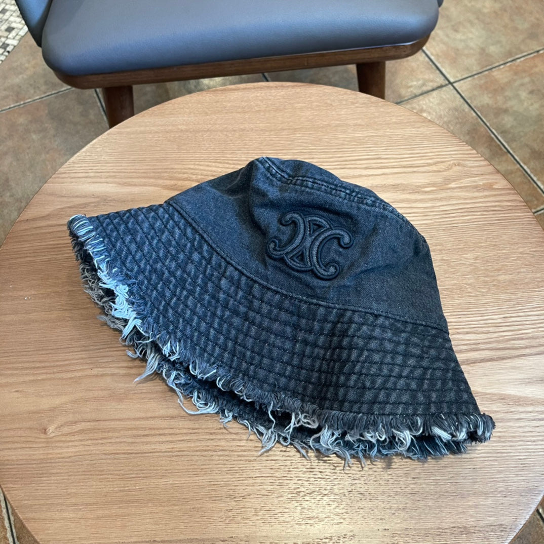Upgrade your accessory collection with the Celine Embroidered Denim Bucket Hat. Crafted from high-quality denim, this stylish hat features a subtle yet eye-catching embroidery, making it the perfect blend of fashion and function. Ideal for sunny days or adding a trendy touch to your outfit, this bucket hat is designed to keep you comfortable and chic. Please note that all sales are final; no returns or exchanges. Make a bold statement with this essential accessory!