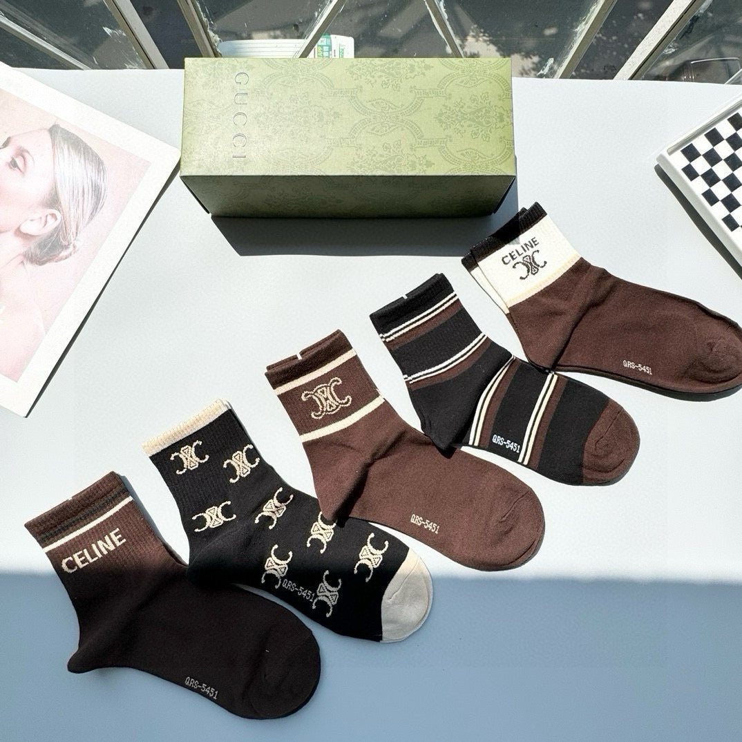 Celine Mid-Calf Fashion Socks - Five Pairs