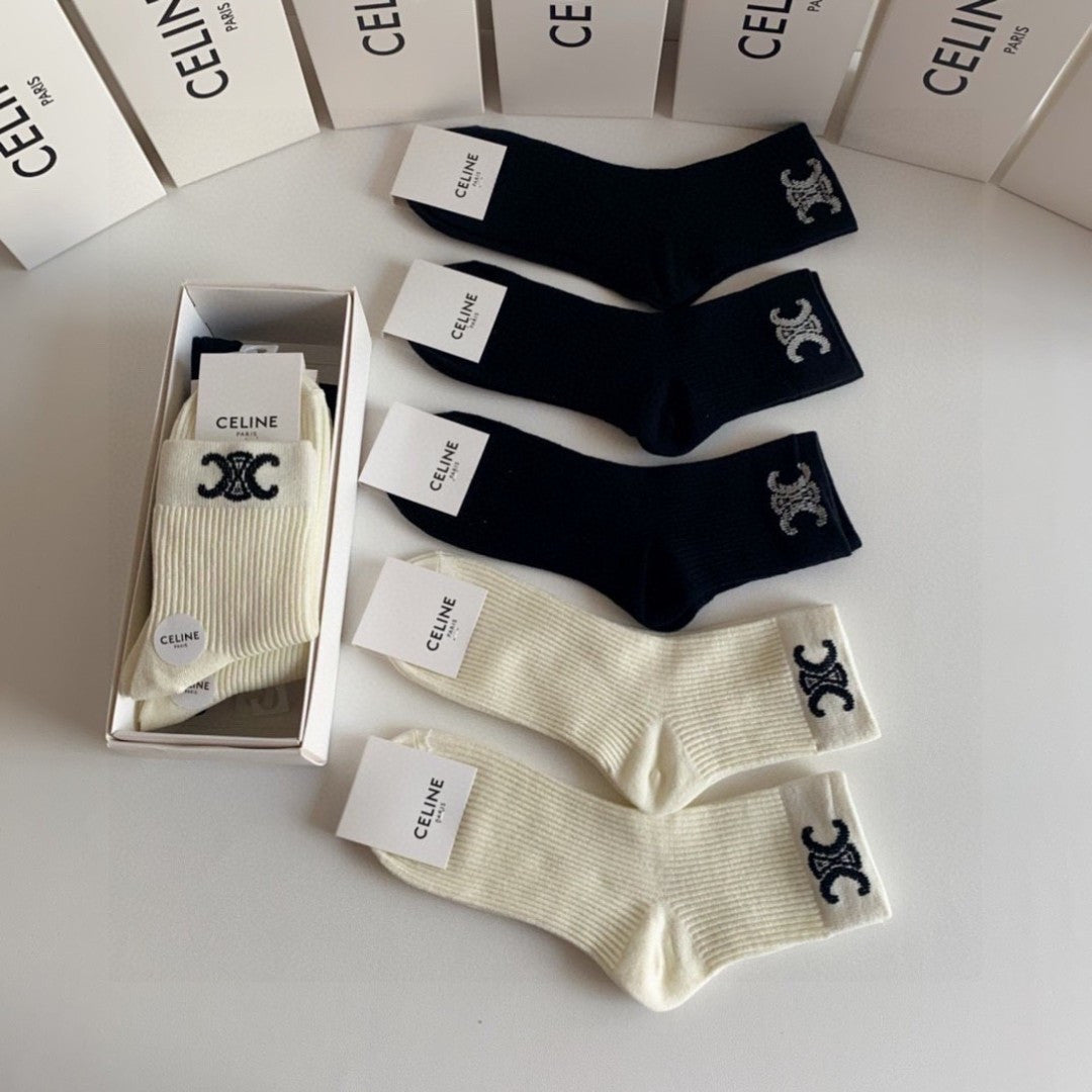 Celine Mid-Length Pile Socks - 5 Pairs Gift Box