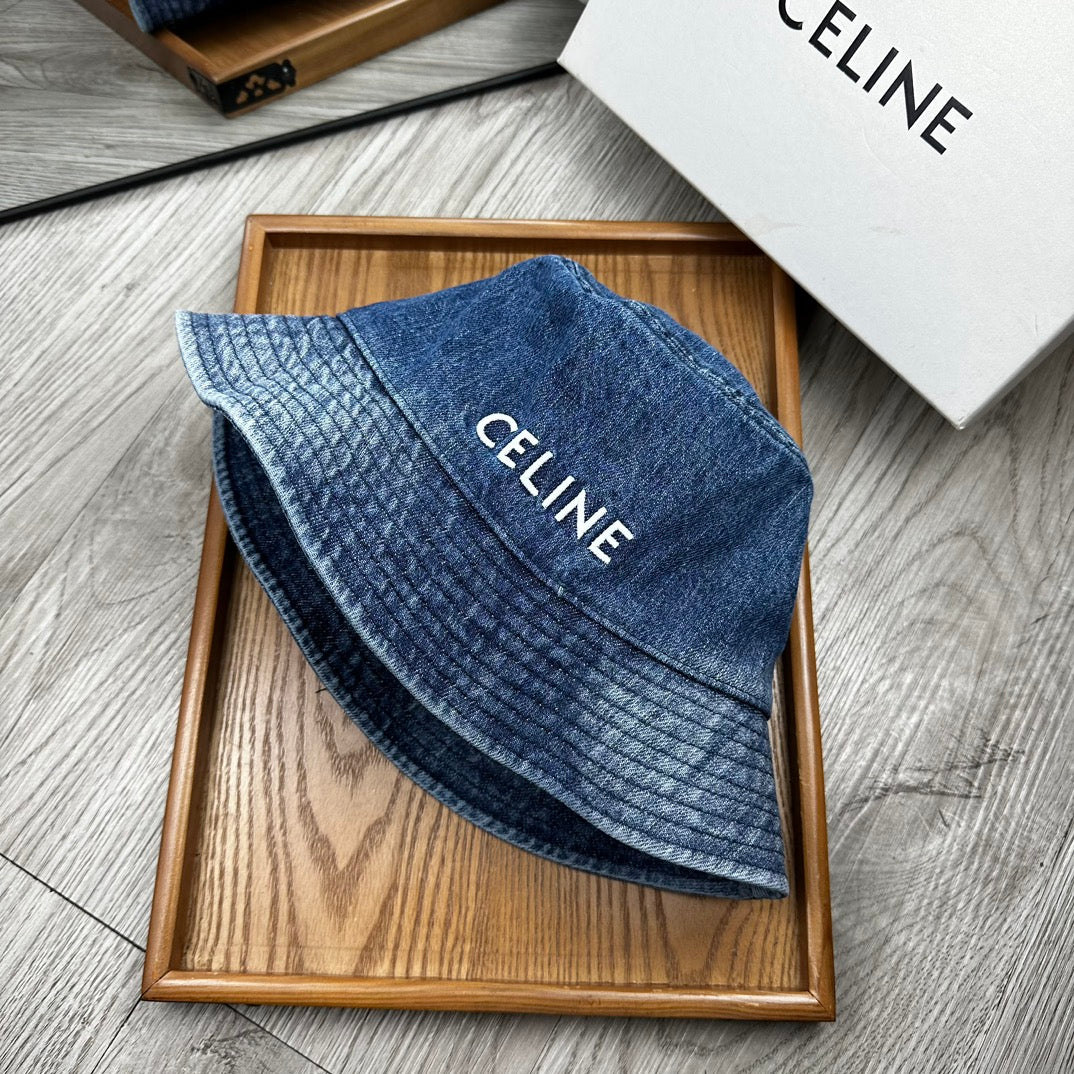 Celine Sfumato Denim Embroidered Bucket Hat - Higher Version