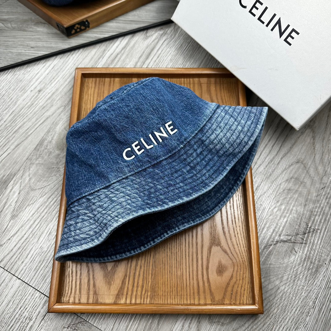 Discover our exclusive Celine Sfumato Denim Embroidered Bucket Hat, featuring a stylish embroidered carriage lining. This versatile bucket hat showcases a classic denim color, making it easy to pair with various outfits—whether you're rocking a laid-back look or dressing up with a flowing skirt.