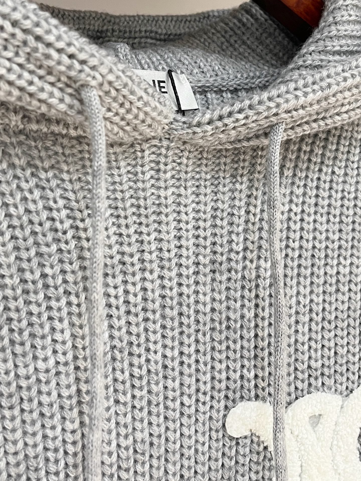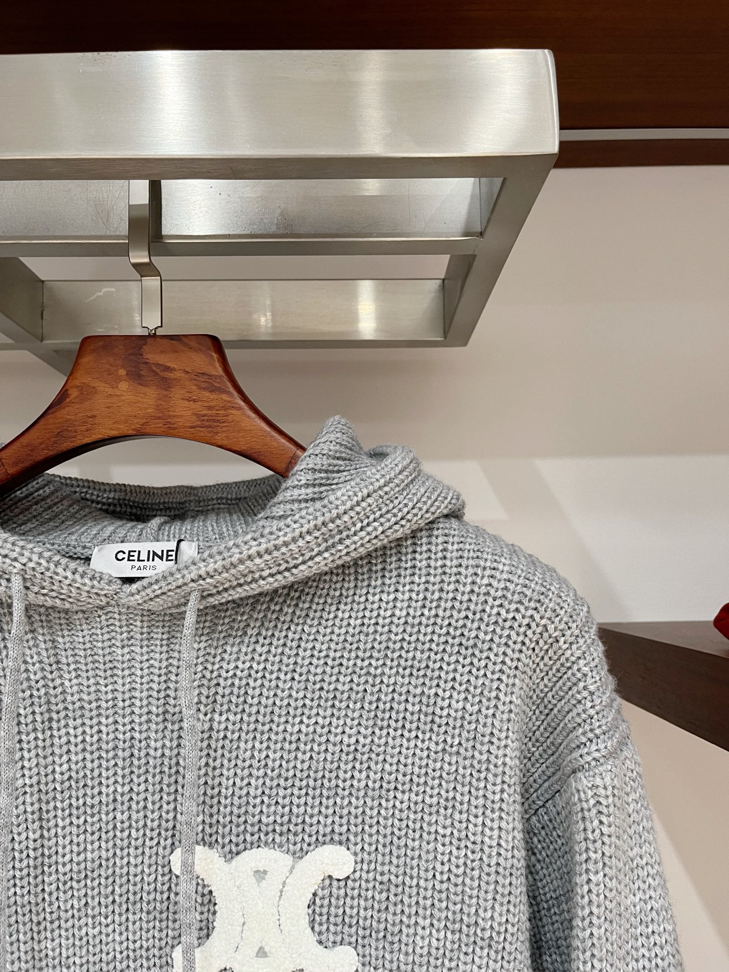 Elevate your wardrobe with the Celine Terry Embroidered Hooded Sweater. Crafted from specially formulated expanded wool, this sweater offers a soft and comfortable fit, showcasing a distinct texture that is both simple and stylish. Perfect for layering, it's a versatile addition to any outfit. Available in sizes S, M, L, and XL. Ideal for casual outings or cozy nights in. Comfortable fashion at its finest.