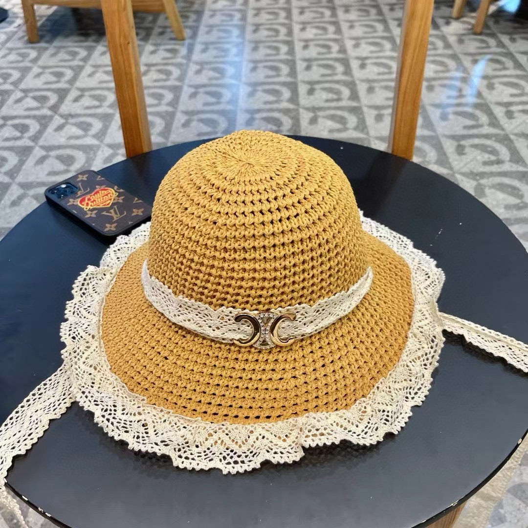 Introducing the Celine Women's Straw Fisherman Hat, designed for the stylish and adventurous summer spirit. This versatile outdoor accessory features a breathable lace design that allows airflow, ensuring comfort during warm days at the beach or seaside. The wide brim provides excellent sun protection while enhancing your summer look. Perfect for outdoor activities, this sweet sun hat effortlessly combines functionality with fashionable flair, making it an essential addition to your summer wardrobe. Embrace the sun with confidence and elegance with the Celine Straw Fisherman Hat.
