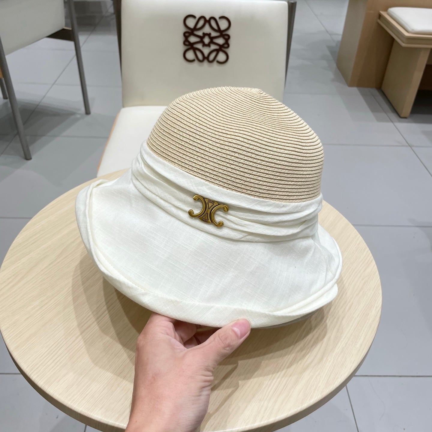 Elevate your summer style with the Celine Women's Wide Brim Straw Fisherman Hat. Designed for versatility and comfort, this flanged cloth-spliced hat offers optimal sun protection while keeping you cool and breathable on warm days. Its wide brim shields your face from harmful UV rays, making it the perfect accessory for beach outings, picnics, or casual strolls. Embrace both fashion and function with this essential summer companion.