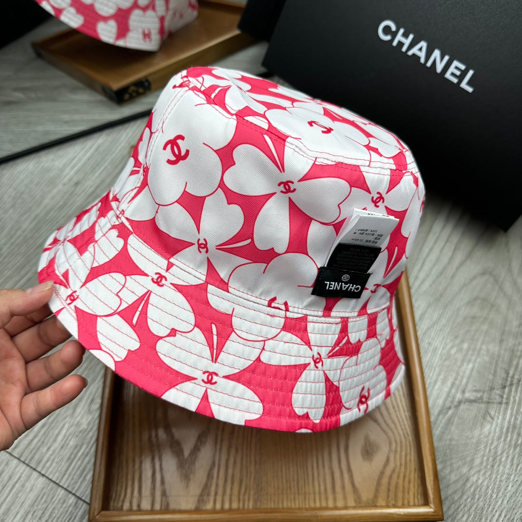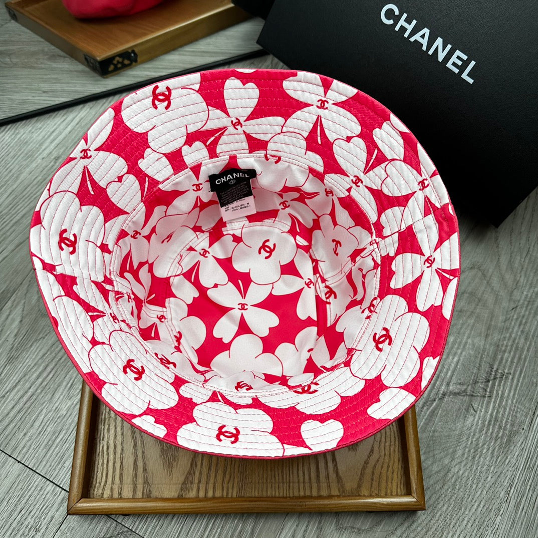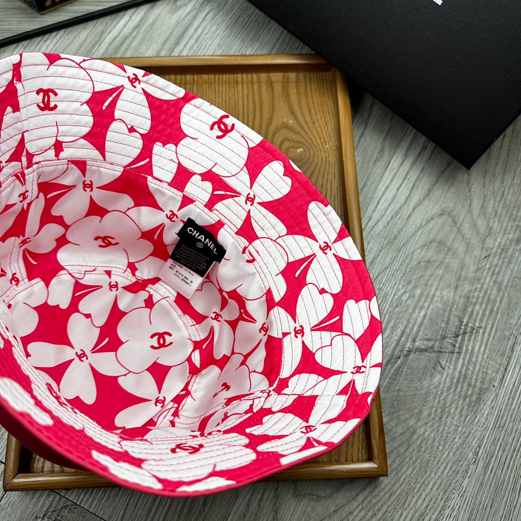 Discover the must-have accessory of the year with the Chanel 2024 Double-Sided Bucket Hat. This unique design features a striking double-sided style, combining Chanel's signature elegance with a bold camellia flower pattern. Offering two distinctive looks in one hat, it's perfect for those who appreciate both reserved sophistication and vibrant passion.