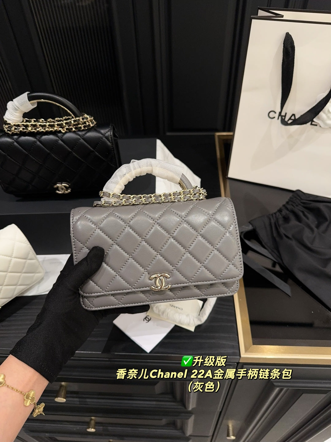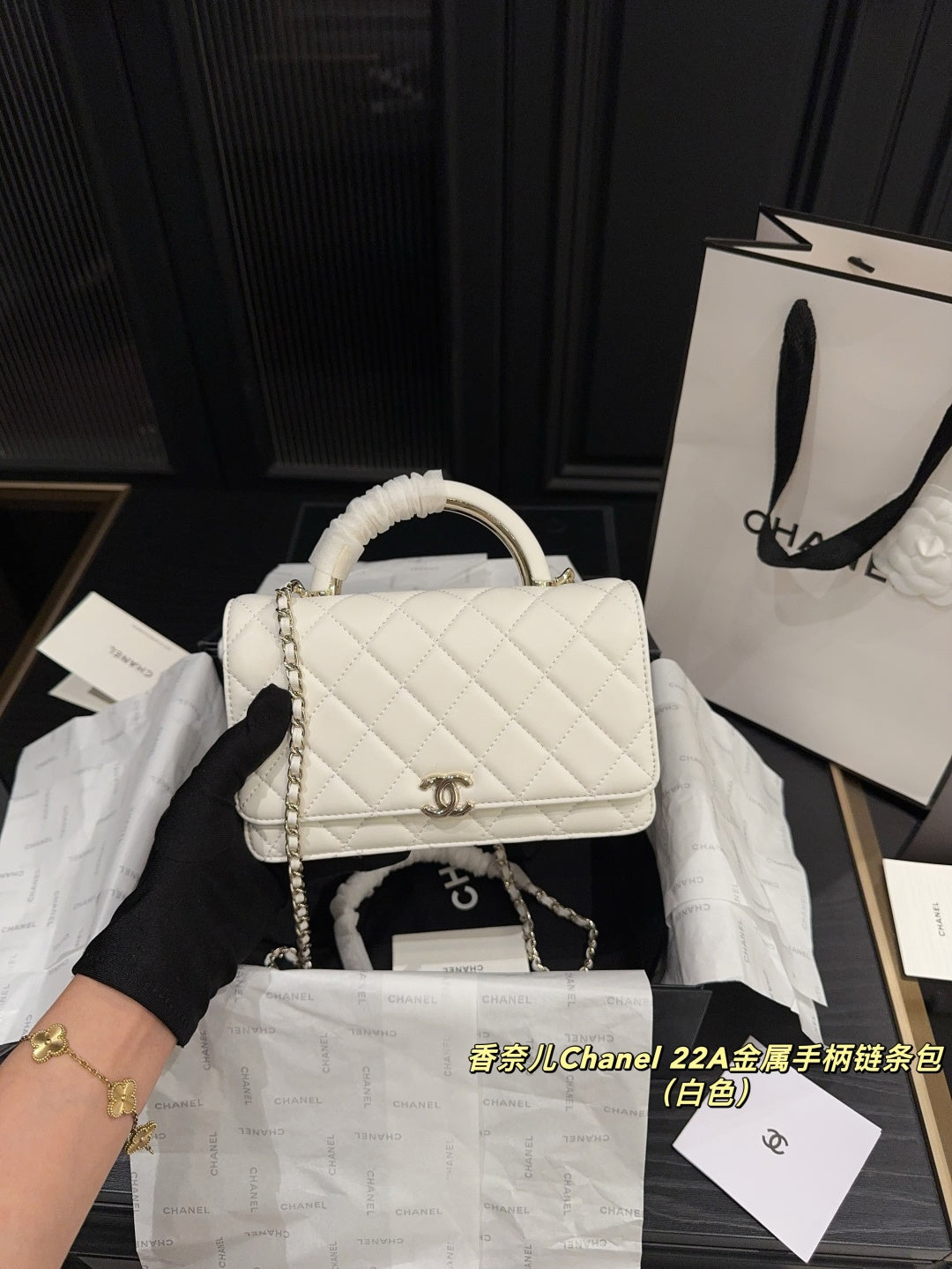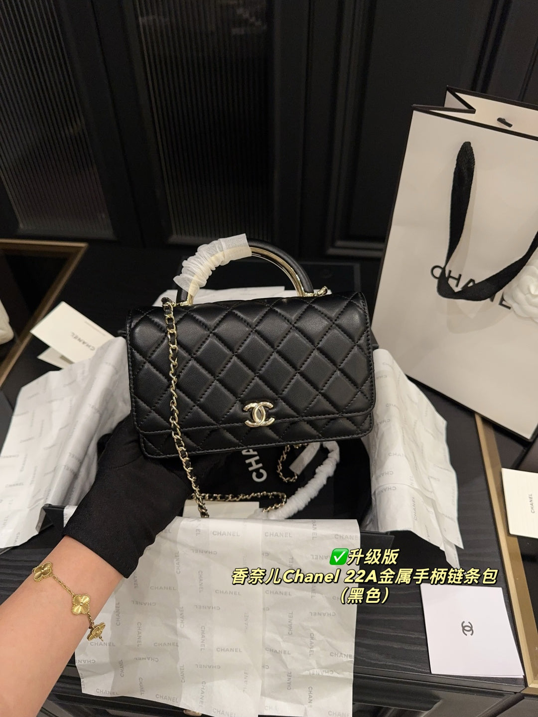 Chanel 22A Metal Handle Chain Bag - Versatile Cowhide Design