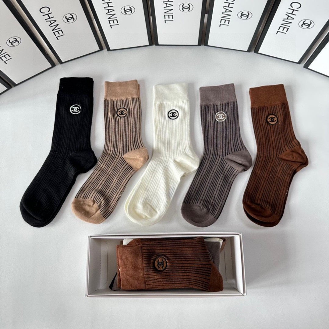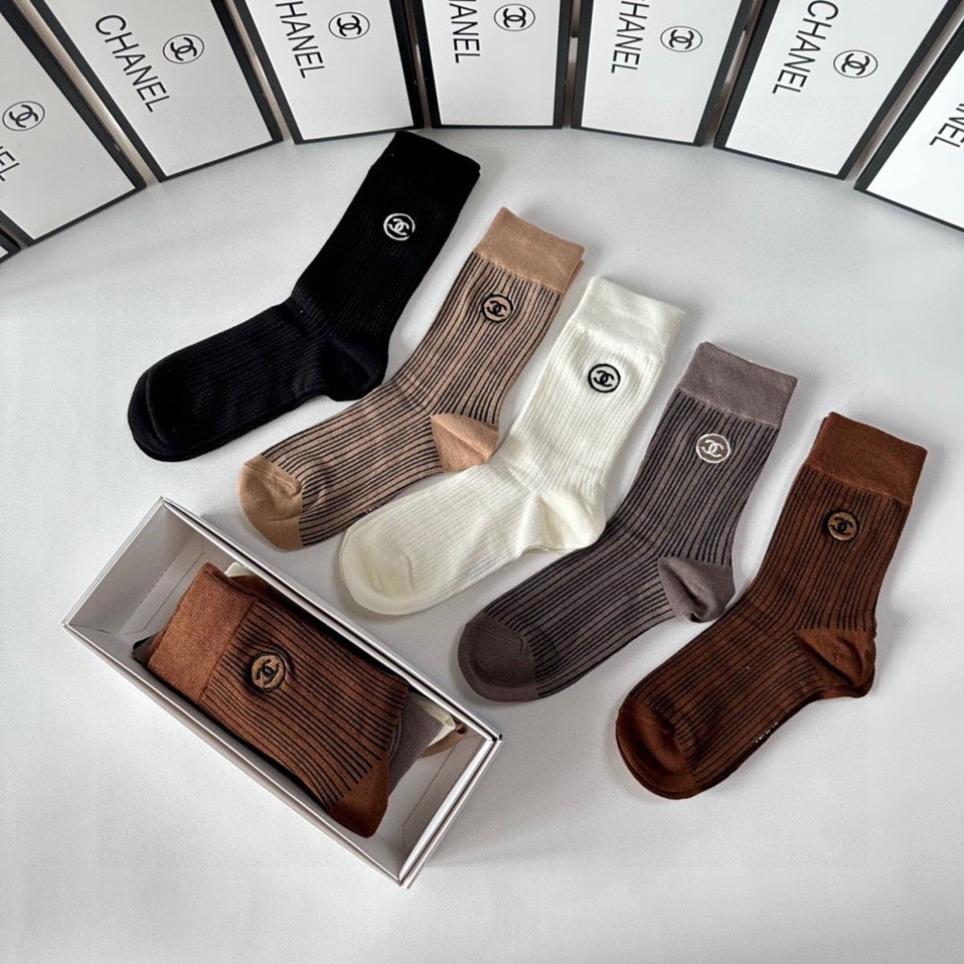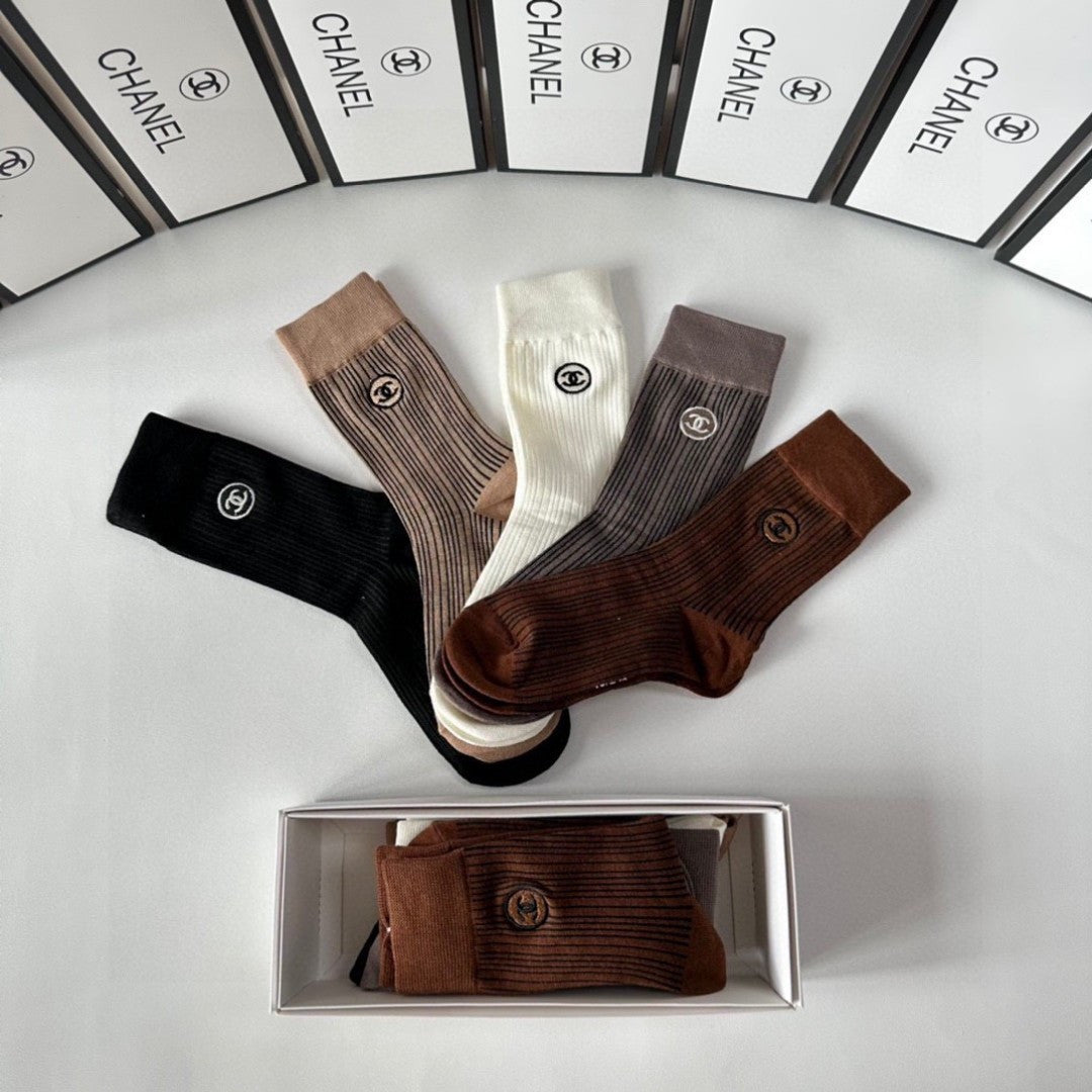 Chanel Cashmere Embroidered Mid-Length Pile Socks - 5 Pairs Gift Set