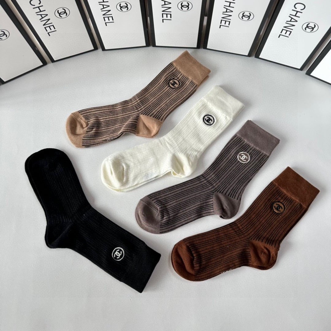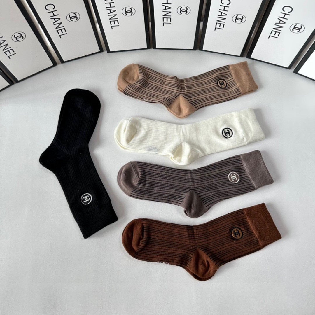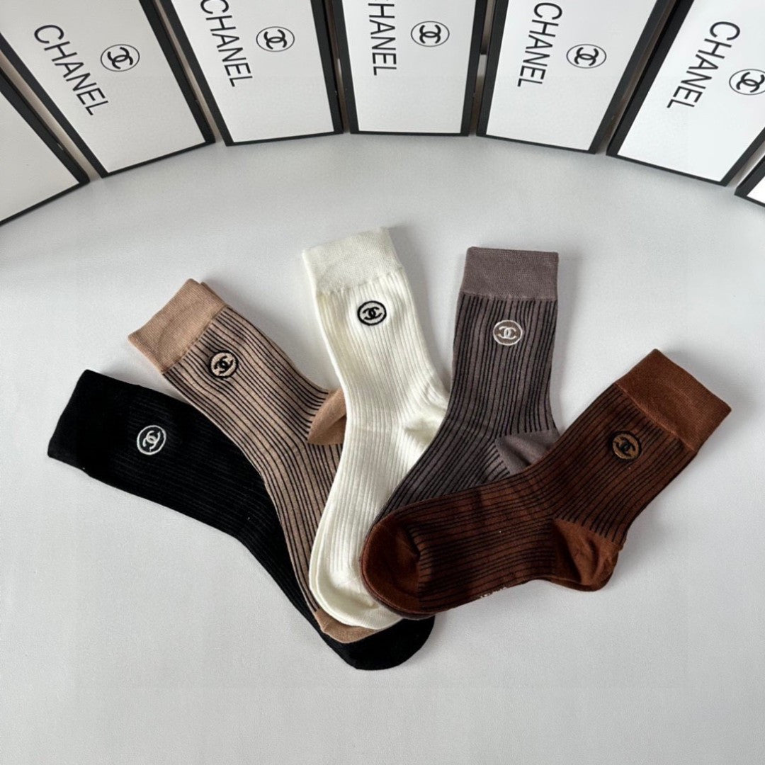 Chanel Cashmere Embroidered Mid-Length Pile Socks - 5 Pairs Gift Set