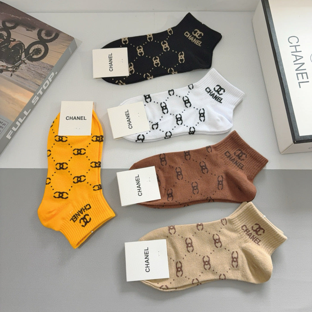 CHANEL Classic Cotton Socks - Iconic Double C Design (5 Pairs)