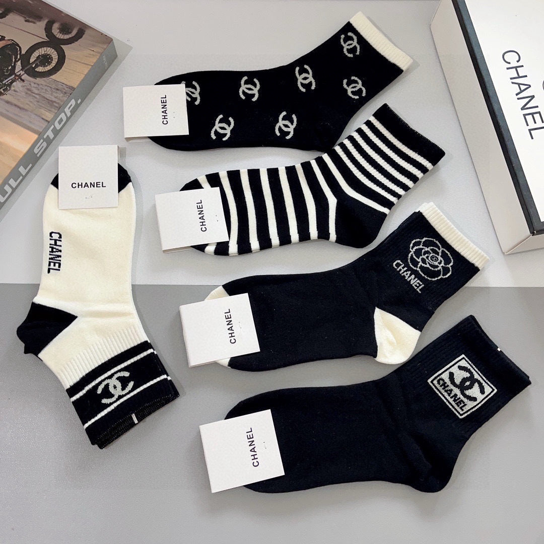 CHANEL Classic Mid-Calf Cotton Socks - 5 Pairs Box