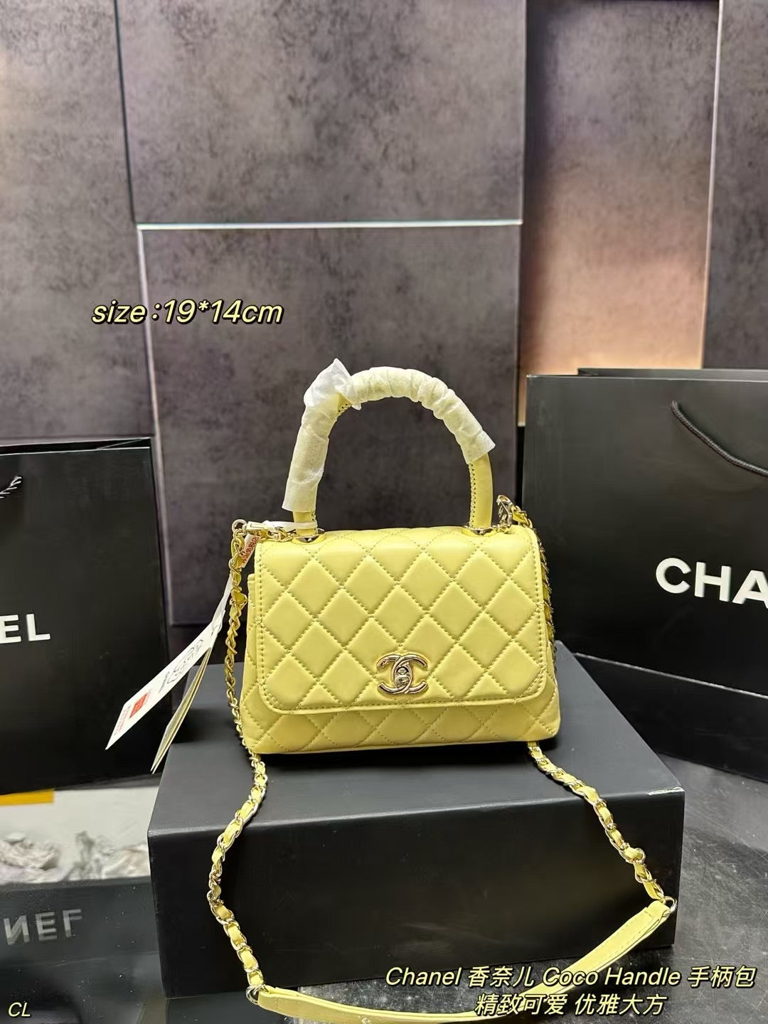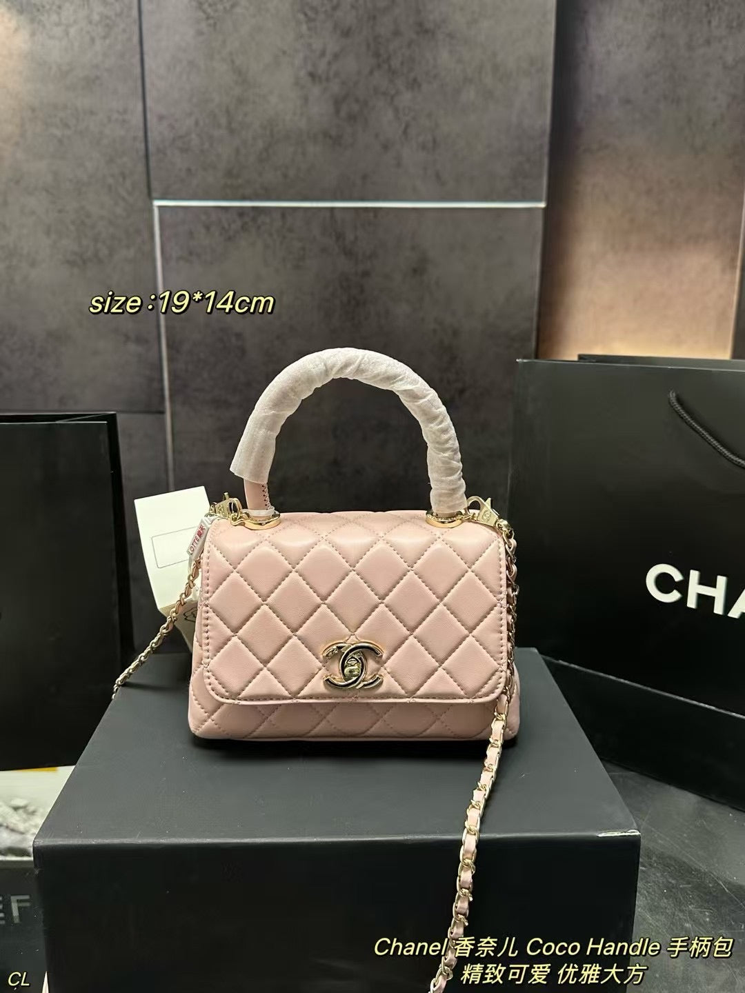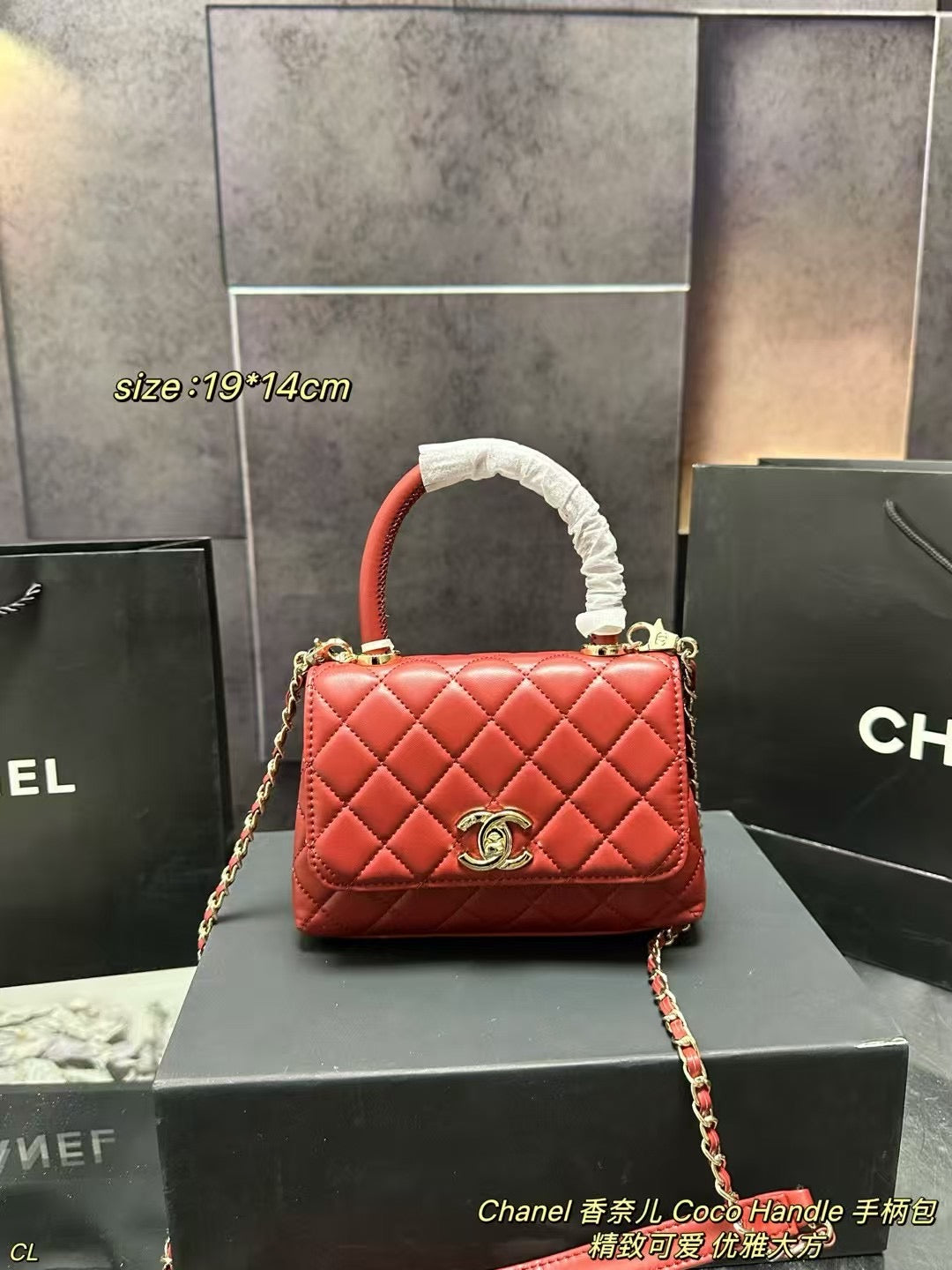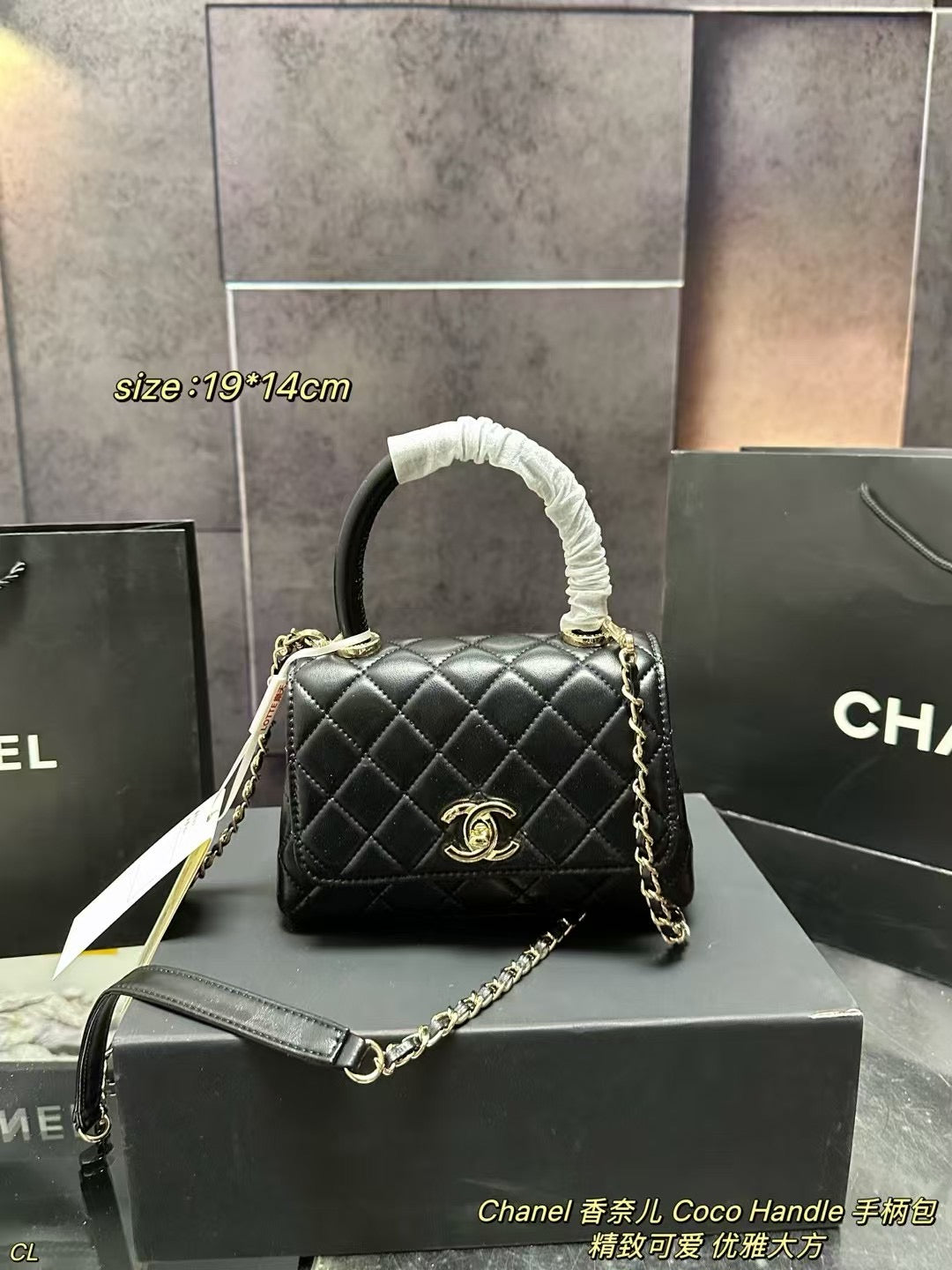 Introducing the Chanel Coco Handle Bag, a timeless accessory that has captivated fashion enthusiasts since its debut. Renowned for its exquisite streamlined design and distinctive buckle, this bag exudes sophistication from every angle. Perfectly sized at 19 x 14 cm, it effortlessly accommodates your essentials such as your mobile phone, wallet, and lipsticks.