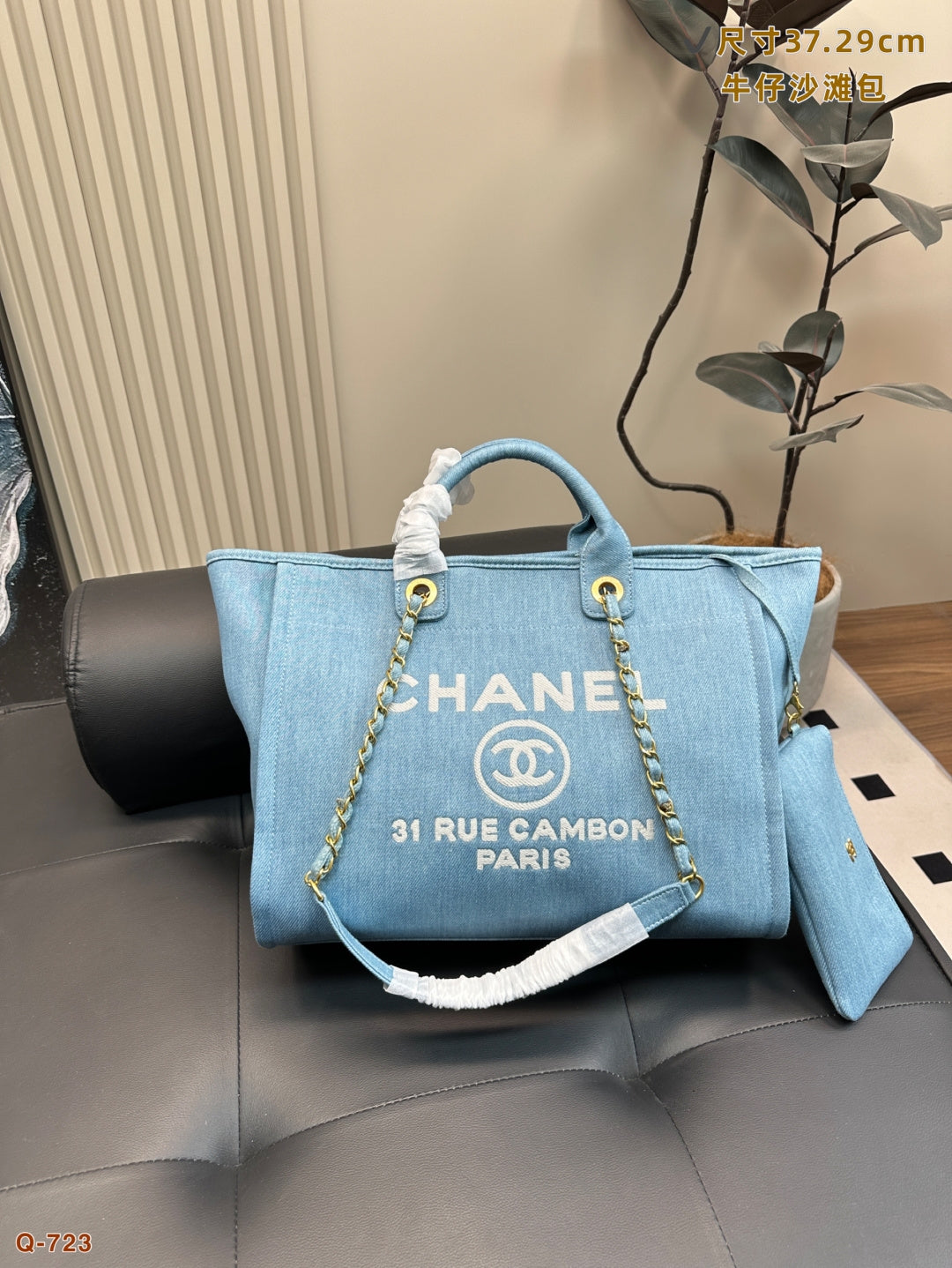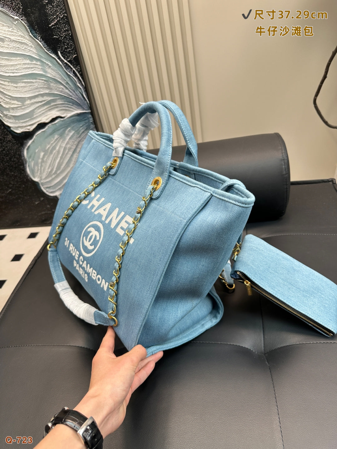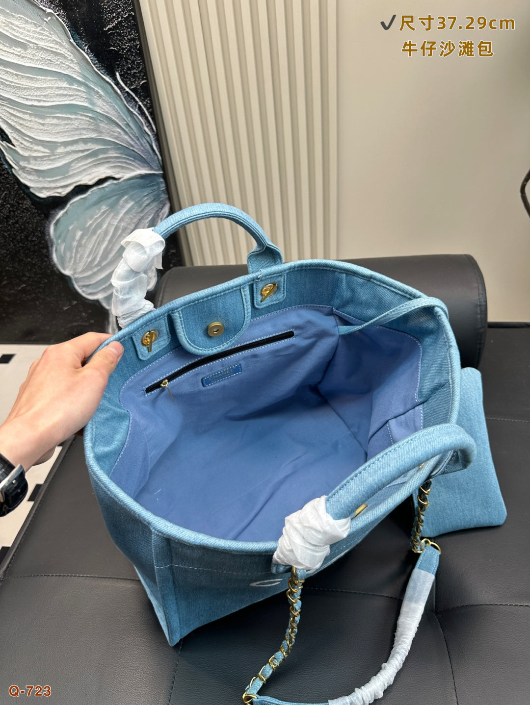 Discover the elegance of the CHANEL Denim Beach Bag, designed for modern mothers who value style and functionality. This chic bag features a generous capacity, making it perfect for all your essentials, whether you're heading to the beach or out for a casual day. The lightweight design ensures that you can carry it effortlessly, no matter how you choose to rock your look. Included is a convenient coin purse for added practicality. Size: 27 x 29 cm. Elevate your accessory game with this exquisite piece from CHANEL.
